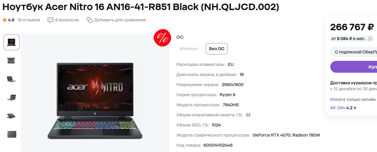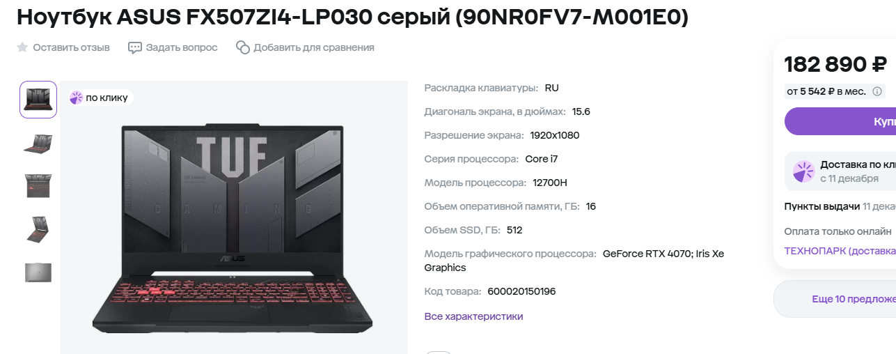 9 мощных геймерских ноутбуков с видеокартой GeForce RTX 4070, которые можно купить в Мегамаркете