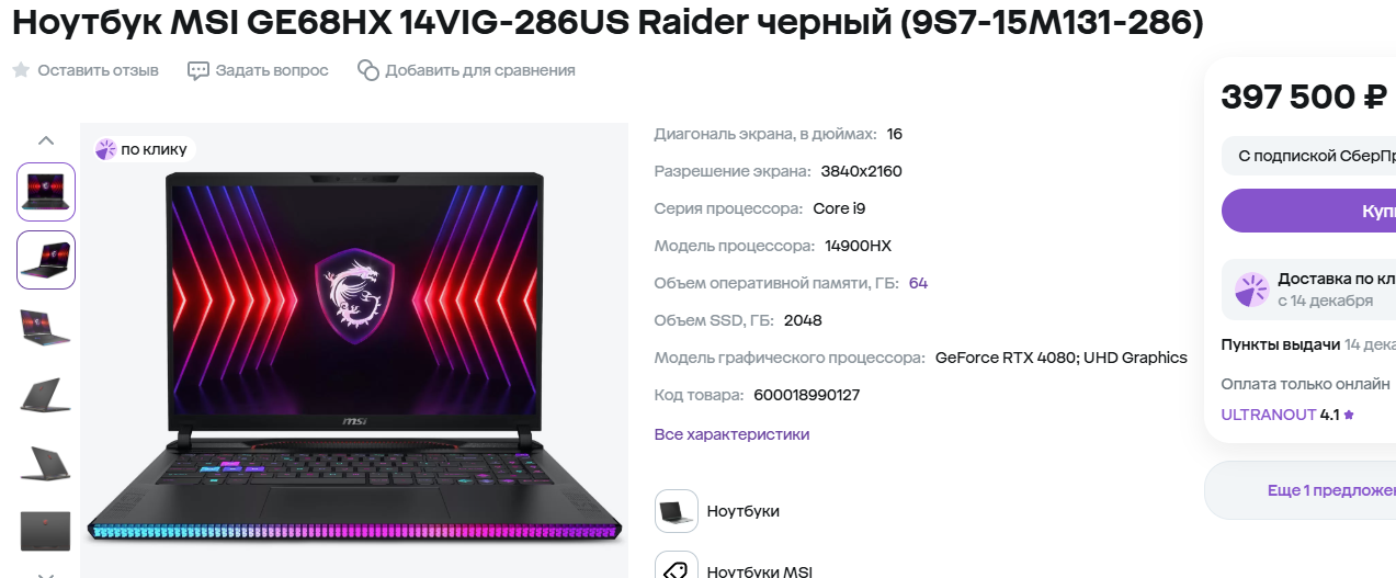 9 прокачанных геймерских ноутбуков с видеокартой GeForce RTX 4080, которые можно найти в Мегамаркете