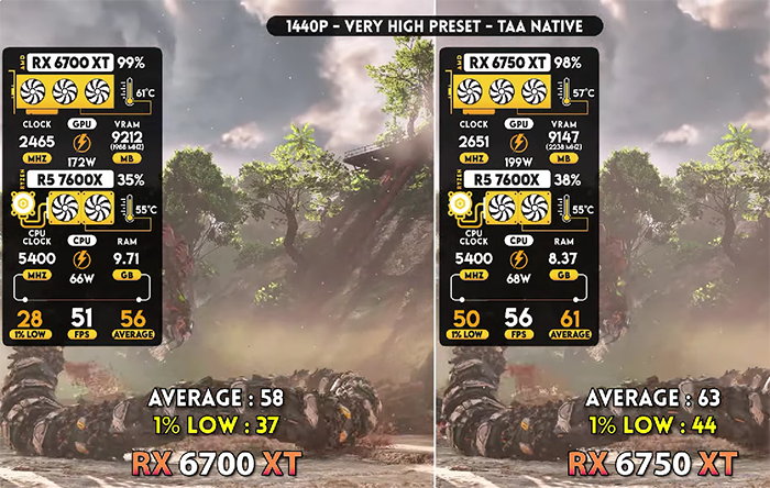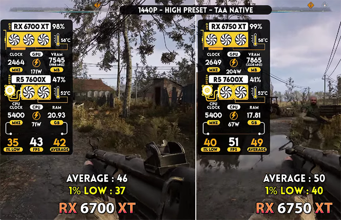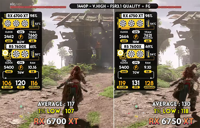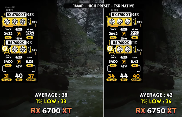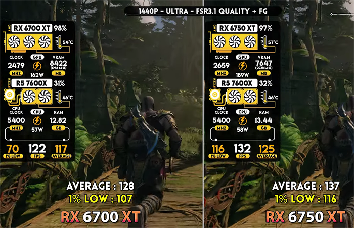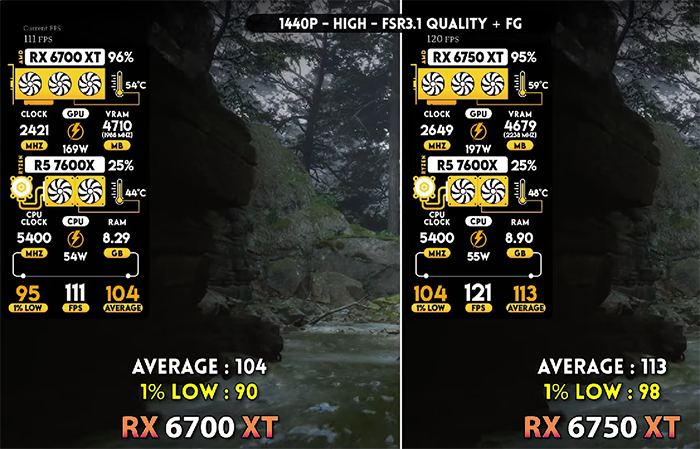 Для тестов были взяты видеокарты Radeon RX 6700 XT и Radeon RX 6750 XT, обладающие похожими характеристиками. Вторая быстрее из-за наличия более скоростной видеопамяти, но в данном случае нас интересует не это. Обратите внимание, доступны тесты в стандартном режиме, а также с технологией масштабирования. Что любопытно, кроме FSR 3.1 была также активирована и Frame Generation, позволяющая увеличить фрамрейт за счёт фирменных алгоритмов. Автор использовал больше игр для теста, но в данном случае так много информации нам не требуется, поскольку результаты линейны и позволяют сделать очевидные выводы. Что же, современные технологии, призванные увеличить фрамрейт, справляются со своей задачей на отлично. В самом худшем случае мы видим двойной буст, что позволяет получить больше 60 кадров в секунду даже в сложных сценариях. Автор не всегда использовал высокие настройки качества графики, поэтому во многих играх у него получается больше 100 fps.