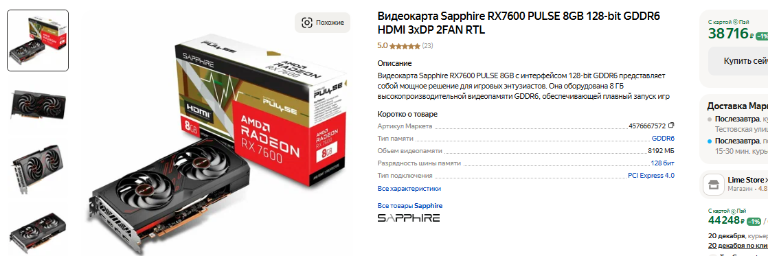 Как уже было сказано выше, не у всех в кармане есть 55 тысяч рублей. Специально для тех, кто не готов тратить больше 40 тысяч, предлагаем Radeon RX 7600. Видеокарта идеально подходит для запуска любых игр в 1080р, а при использовании указанных выше технологий масштабирования способна тянуть требовательные новинки на высоких настройках графики ещё много лет. Учитывая появление неприятных артефактов изображения – это не идеальное решение, но ничего дешевле с таким потенциалом на рынке нет.