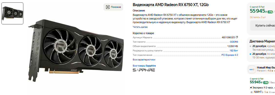 Ещё раз повторимся, что выбор видеокарты – это всегда компромисс, а попытки взять как можно более производительный графический чип не всегда приводят к желаемому результату. Так, Radeon RX 6700 XT с ожиданием в несколько недель вы можете получить за 40 тысяч рублей, тогда как Radeon RX 6750 XT здесь и сейчас обойдётся вам в 56 тысяч. Многим геймерам такая сумма покажется слишком высокой, но мы с вами видели, что даже видеокарта за 56 тысяч не гарантирует запуск всех игр в 2К на высоких настройках графики. На самом деле обе видеокарты сильно устарели, поэтому мы обратим внимание на что-то более новое.