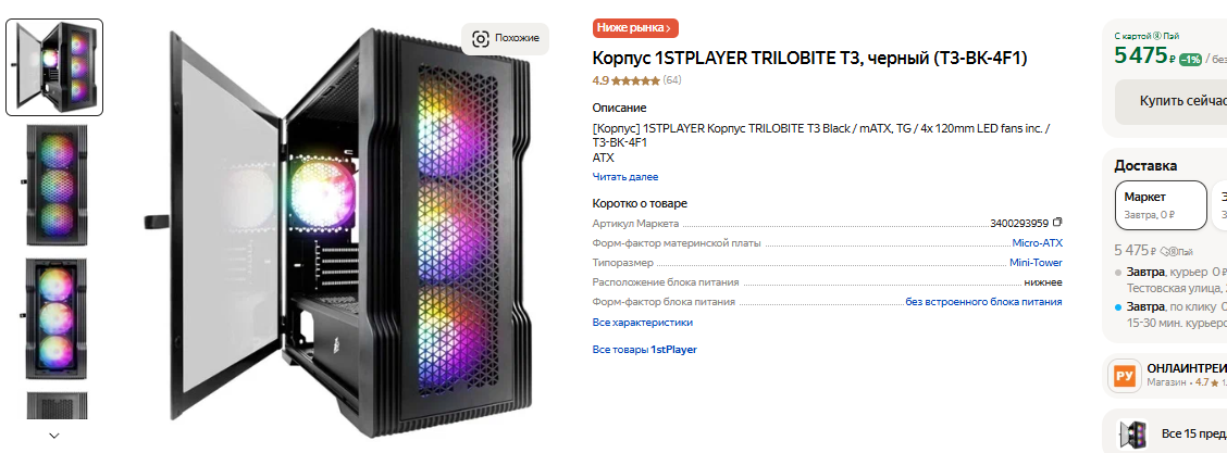 Что до корпуса, то нам идеально подойдёт 1STPLAYER TRILOBITE T3. Он небольшой, но вместительный. Внутри достаточно места даже для более быстрой видеокарты. За счёт наличия встроенных вентиляторов удаётся обеспечить отвод горячего воздуха, что также положительно скажется на стабильности всей системы. В наличии все ключевые интерфейсы для подключения компонентов, а в целом системный блок можно хранить даже на столе. Если подсчитать все расходы, то выходит порядка 120 тысяч рублей. Летом за такой компьютер вы бы заплатили около 100 тысяч, но рубль не демонстрирует высокой стабильности, поэтому рассчитывать на низкие цены не приходится. Мы выбрали наиболее оптимальные компоненты, а через несколько лет можно заменить процессор, видеокарту или твердотельный накопитель. Оперативной памяти установлено с запасом, а сборку можно назвать перспективной и недорогой.