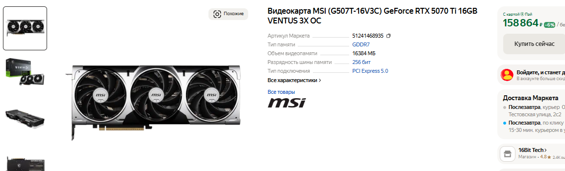 Следует учитывать, что даже до введения санкций в первые несколько недель после релиза настольная графика продавалась с огромной наценкой. Такова наша реальность, ведь все хотят заработать. Разумные геймеры предпочитают подождать, ну а людей, готовых платить за срочность, предостаточно. Что же, GeForce RTX 5070 Ti точно не назовёшь дешёвой. За новинку просят почти 160 тысяч рублей, хотя в сети пишут, что вчера она была доступна на других площадках по 135 тысяч. Сегодня все выгодные предложения уже недоступны. Сложно сказать, возможно магазины и сами скорректировали цены, а может видеокарты разобрали перекупщики, выставив их на «ЯндексМаркете». Важно помнить, что GeForce RTX 5070 Ti не стоит таких денег. Да, видеокарта предлагает солидный прирост, но цена её должна была остановиться на 100 тысячах рублей. Это с учётом всех налогов и проблем, возникающих при ввозе посредством параллельного импорта. 160 тысяч рублей – это явный перебор, а высокая стоимость непосредственно связана с глобальным дефицитом.