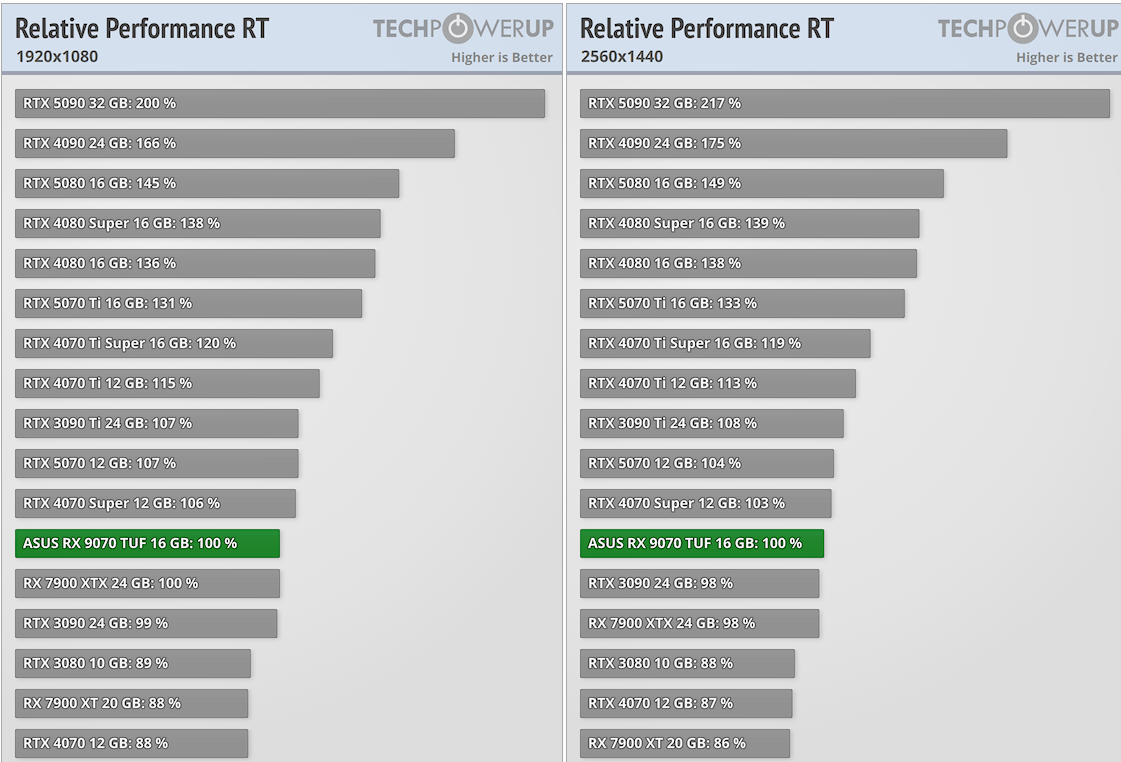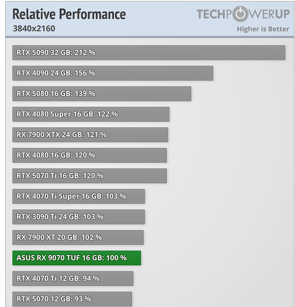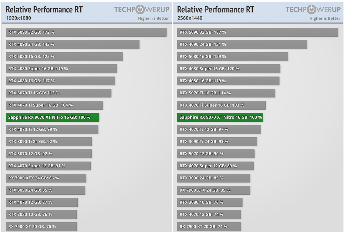 GeForce RTX 5090 нет в продаже, GeForce RTX 5080 стоит как минимум на 50% дороже рекомендаций производителя, тогда как GeForce RTX 5070 Ti столкнулась с дефицитом и быстро исчезла из продажи. GeForce RTX 5070 постигла такая же участь, ну а сегодня показать себя с лучшей стороны может AMD. Пока неясно, насколько большой будет первая партия настольной графики серии Radeon RX 9070, но в сети уже появляются хорошие новости. По данным крупного британского ритейлера OverclockersUK, только эталонная модель Sapphire Radeon RX 9070 ХТ поступила в количестве 1000 единиц. При этом на складе есть модели других производителей, а в целом нехватки не наблюдается. Некоторые эксперты пишут, что даже большая партия не насытит спрос, но судить об этом мы будем уже завтра, пока же обратимся к тестам Radeon RX 9070, которая претендует на звание одной из наиболее востребованных видеокарт весны 2025 года. Рассмотрим тесты на сайте TechPowerUp, где уже ранее изучили потенциал Radeon RX 9070 ХТ.