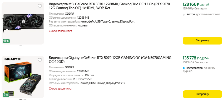 В качестве оптимального выбора для 2К считается GeForce RTX 4070 SUPER, но стоимость этой видеокарты за последний месяц увеличилась на 10 тысяч рублей. Причина кроется в дефиците новинок. Обратите внимание на скриншот выше. Здесь указаны цены на GeForce RTX 5070. Согласно многочисленным тестам, новинка всего на 5% быстрее GeForce RTX 4070 SUPER, но встретить её в российской рознице дешевле 100 тысяч рублей невозможно. Сегодня GeForce RTX 5070 и вовсе продают за 130 тысяч, ну а это настоящий рекорд. В зарубежной прессе пишут, что даже в США такая видеокарта в дефиците, а в результаты купить её дешевле 800 долларов проблематично. На этом фоне нет ничего удивительного в том, что стоимость GeForce RTX 4070 SUPER пошла вверх. Если вам здесь и сейчас нужна мощная видеокарта, и вы готовы заплатить за неё 80 тысяч рублей, то выбора фактически нет. Вполне возможно, что GeForce RTX 5070 к началу лета будет стоить 90 тысяч, ну а встретить её за 70 тысяч удастся только к концу 2025 года.