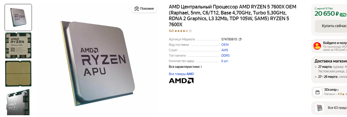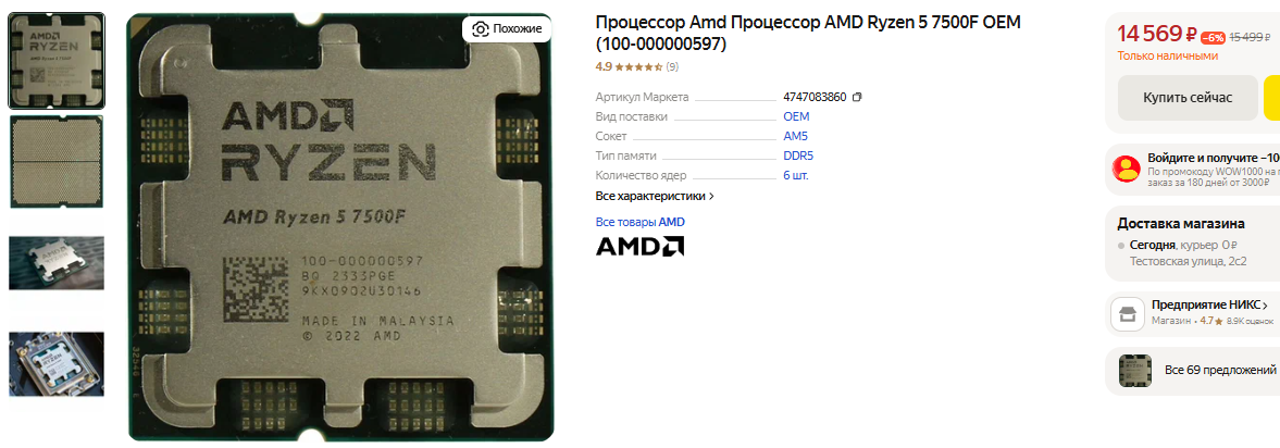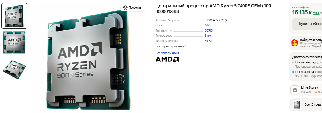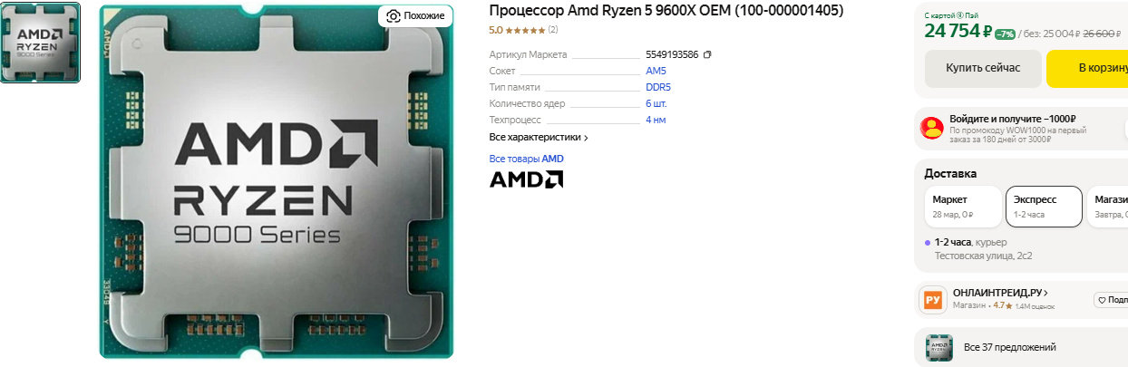 Ну и было бы неправильно обойти стороной Ryzen 5 9600X. Напомним, это самый новый процессор AMD на сокете АМ5. Он был выпущен в конце 2024 года, но сильно разочаровал экспертов. Даже в рабочих сценариях камень незначительно быстрее Ryzen 5 7600Х, что делает его не интересным для конечного потребителя. Если вы собираете новый ПК, то брать Ryzen 5 9600X нет никакого смысла. По сравнению с Ryzen 5 7500F вы заплатите дополнительные 10 тысяч рублей, но не получите ничего нового. По крайней мере в играх. Первые поставки Ryzen 5 9600X реализовывались с огромной наценкой. Камень стоит больше 30 тысяч рублей, но со временем заменит Ryzen 5 7600Х, поскольку играет в том же сегменте.