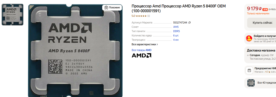 Это Ryzen 5 8400F, купить который вы можете чуть дороже 9 тысяч. Ранее в сети встречались тесты, авторы которых также выяснили, что этот процессор в играх почти не уступает Ryzen 5 7500F, а значит переплачивать за тактовую частоту нет никакого смысла. Важно отметить, что встречаются игры, зависимость которых от процессора выше среднего по рынку. К счастью, таких тайтлов делают мало, поскольку многие разработчики акцентируют внимание на игровых приставках. Ну а поскольку встроенные процессоры там сильно устарели, то приходится основной опор делать на графическую часть. Если вы задумываетесь о том, какой камень купить, можете смело брать любой из выше перечисленных. Ryzen 5 7400F нельзя назвать выгодным, но через пару месяцев стоимость его может пойти вниз. Ryzen 5 7500F здесь кажется наиболее интересным, хотя Ryzen 5 8400F также отлично справляется со своими задачами.