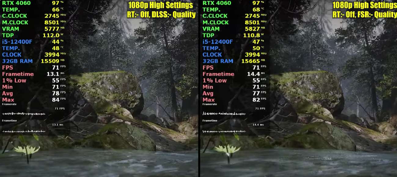 Таким образом с точки зрения первоначальных инвестиций консоль кажется выгоднее, но не всё так очевидно. Благодаря проникновению технологий масштабирования потенциал недорогих видеокарт становится всё более заметным, что позволяет увеличить жизненный цикл не самых дорогих решений. В связи с этим можно сделать вывод, что особенно важным для владельца ПК становится участие в настройке параметров той или иной игры. Слепо запускать требовательные новинки, как это происходит на консолях, самонадеянно, ну а мы изучим результаты тестирования, проведённого на канале PC Support & Gaming Test. Автор взял видеокарту GeForce RTX 4060, процессор Core i5-12400F, а после прогнал всё это через актуальные игры, не забыв включить технологию масштабирования. Сам автор пытается выяснить, насколько DLSS превосходит FSR, но нас в данном случае интересуют другие итоги, о чём и поговорим ниже.