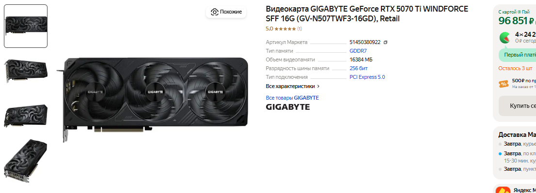 Почти 100 тысяч стоит GeForce RTX 5070 Ti, но даже в Германии за такую видеокарту просят больше 850 евро. В переводе на рубли выходит 80 тысяч, что заметно дешевле. GeForce RTX 5070 Ti получила 16 Гб памяти и способна справляться с требовательными новинками даже в 4К, хотя без DLSS ей в таком разрешении делать всё же не чего. GeForce RTX 5070 Ti дорогая и подходит для состоятельных геймеров. Ещё недавно за неё просили 140 тысяч, а значит выгода налицо. Здесь всё зависит от точки зрения. Если сравнивать с Европой, то цена высокая, но учитывая сложную санкционную логистику – GeForce RTX 5070 Ti за 96 тысяч кажется выгодной.