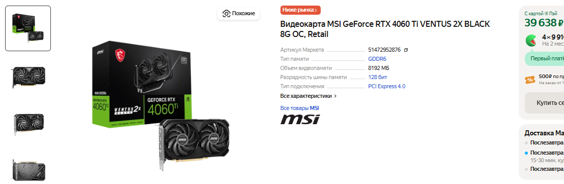 Может показаться, что на фоне укрепления курса национальной валюты и насыщения рынка видеокарты прошлого поколения начнут дешеветь. На самом деле это не так, в чём мы с вами убедимся прямо сейчас. Первым делом мы посмотрим на GeForce RTX 4060 Ti. В той же Америке за неё уже давно просят меньше 400 долларов, но в РФ только сейчас стоимость её опустилась до 40 тысяч рублей. Столько просят за GeForce RTX 5060 Ti с 16 Гб памяти, но российским геймерам приходится потуже затягивать пояса. Мы уже видели тесты GeForce RTX 5060 Ti, которая получила 8 Гб памяти. Даже наличие новой архитектуры не помогает в 2К, где нужно хотя бы 10 Гб. И всё же, если вернуться к российским реалиям, то GeForce RTX 4060 Ti за 40 тысяч можно назвать выгодной. Пару недель назад за неё просили от 50 тысяч, а значит сегодня геймеры могут ощутимо сэкономить.