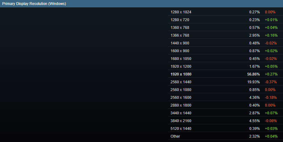 Если посчитать, то таковых выйдет 65%, ну а это самая многочисленная группа. Часть геймеров владеет старыми ноутбуками, но в данном случае нам важны цифры, а не причины особенностей опубликованной статистики. Если попытаться встать на место разработчиков видеоигр, то проблема становится ещё более заметной. Все актуальные блокбастеры должны включать графику нового поколения. Вот только раскрыть весь потенциал игровых движков нового поколения на мониторе с разрешением 1080р никак не выйдет. Вам потребуется полноценный с 4К, но таковых на руках у геймеров критически мало. Оптимизировать контент под 4К всё равно придётся, поскольку это своеобразная визитная карточка студии, но куда важнее обеспечить наиболее массовую категорию потребителей изображением высокого качества. Это значит, что владелец монитора с народным разрешением не должен разочароваться, ведь недовольство геймеров может обернуться провальными продажами. Оптимизация становится всё более сложной, ну а мы видим, что заметная часть геймеров переходит на 2К, занимая золотую середину.