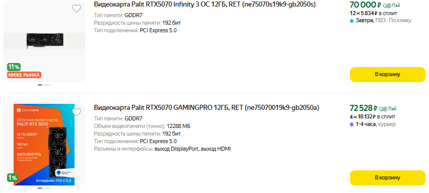 Это разрешение, куда примыкают такие соотношения сторон: 2560x1440р, 2560x1080р, 2560x1600р и 2880x1800р. Первое остаётся более массовым и в целом отражает стандарт, но все эти разрешения вместе занимают 25% рынка. Это далеко до 65% у 1080р, но в целом позволяет говорить о важном переломе в сознании потребителей. Цены на видеокарты мы посмотрим ниже, но суть сводится к тому, что геймеры просто не видят перспективы приобретения монитора с разрешением 4К. Самая красивая графика остаётся недоступна большинству, ну а 2К позволяет выжить из актуальных игр почти максимум. Было время, когда та же NVIDIA активно продвигала новый стандарт разрешения, но в какой-то момент Дженсен Хуанг осознал, что его продукция не тянет на картинку высокого качества. Массовый геймер не может себе позволить дорогие видеокарты, а сегодня на рынке наблюдается настоящий застой. Статистика доказывает, что любители видеоигр не спешат менять свои старые мониторы, а ключевая проблема в том, что даже дорогие видеокарты не тянут 2К. Давайте к примерам. Известно, что разрешение 2К предъявляет не только высокие требования к быстродействию видеокарты, но и к количеству видеопамяти. 8 Гб вам точно не хватит. Тесты доказывают, что во многих новых играх с 8 Гб уже наблюдаются просадки, а значит нужно не меньше 12 Гб. У NVIDIA здесь есть GeForce RTX 5070, но купить эту видеокарту в РФ дешевле 70 тысяч проблематично.