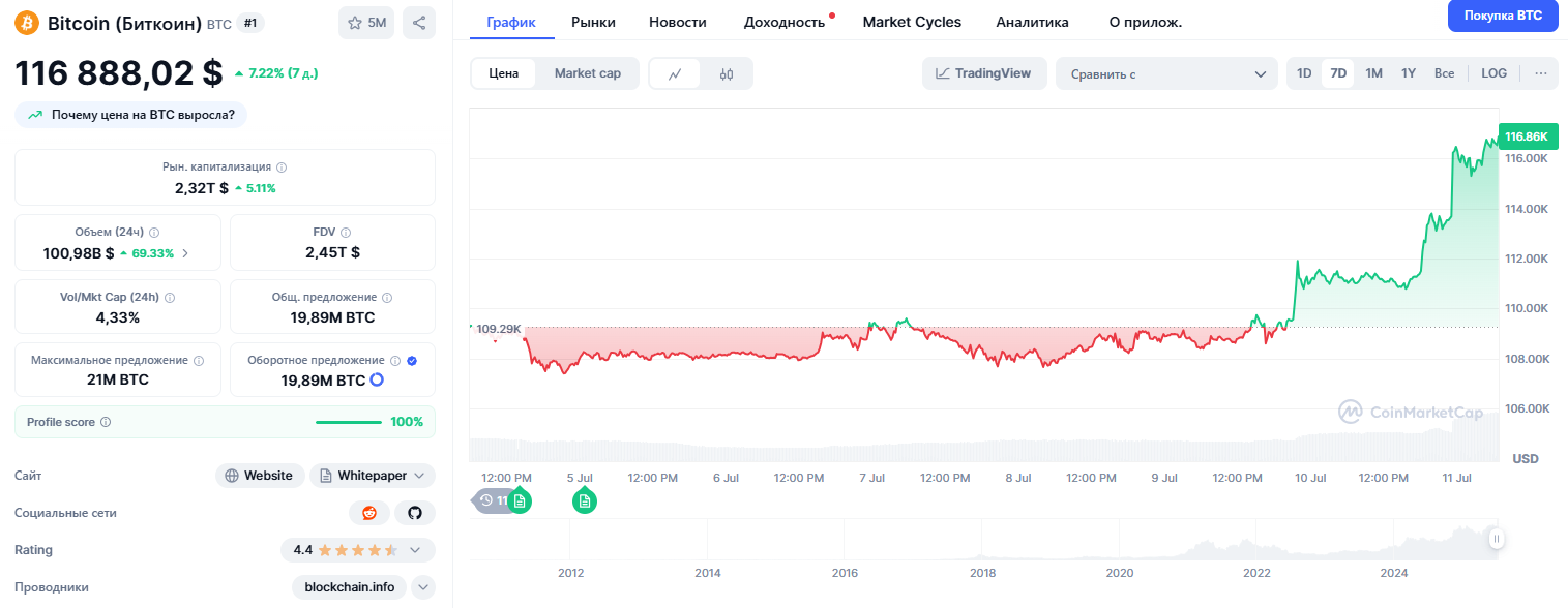Утром 11 июля чуть ли не все новостные порталы пишут о новой волне на рынке криптовалют. Аналитики отмечают, что сегмент цифровых денег гудит, словно переполненный пчелиный улей перед грозой. Но на этот раз такой шум поднимается не от страха потерять всё, ведь на горизонте уже виднеется очередной подъём, о котором так давно говорят эксперты. На момент написания данного материала за 1 ВТС давали почти 117 тысяч долларов. Попахивает бычьим ралли, но аналитики уверяют, что мы видим лишь небольшую разминку, ведь настоящее ралли начнётся после преодоления ключевого уровня поддержки в 130 тысяч долларов. Предполагается, что очередной потолок первая криптовалюта пробьёт уже этой осенью, а крупные профильные издания пророчат фундаментальные изменения на рынке.