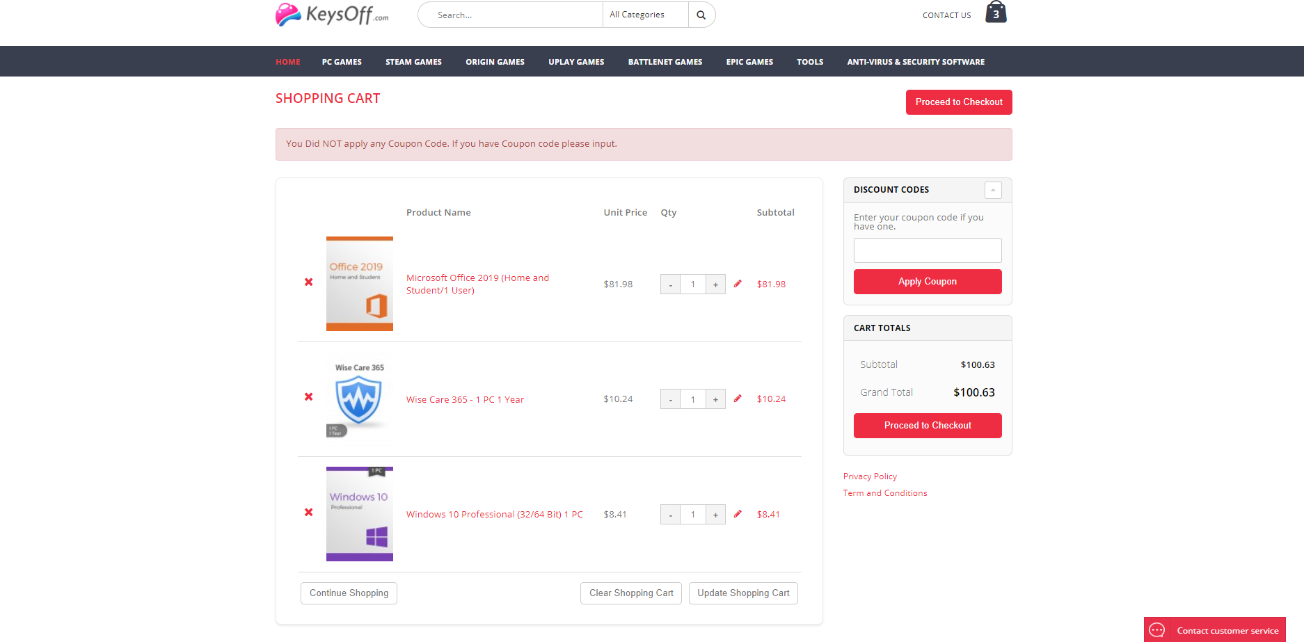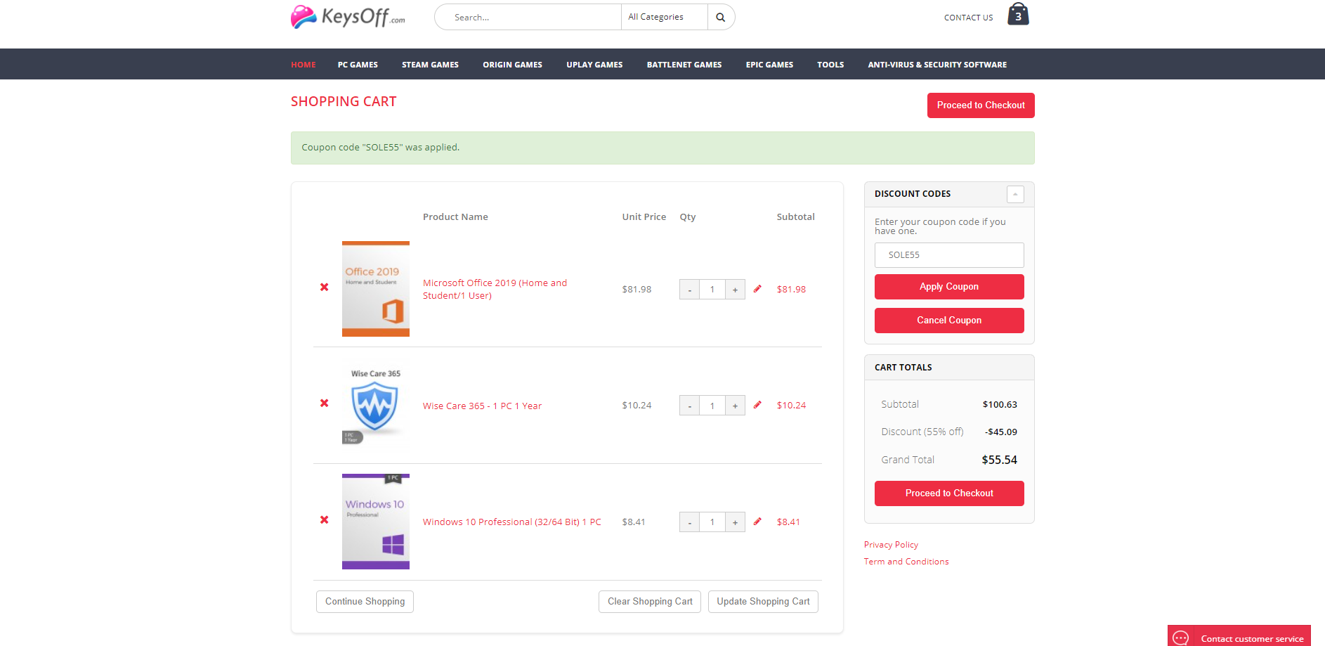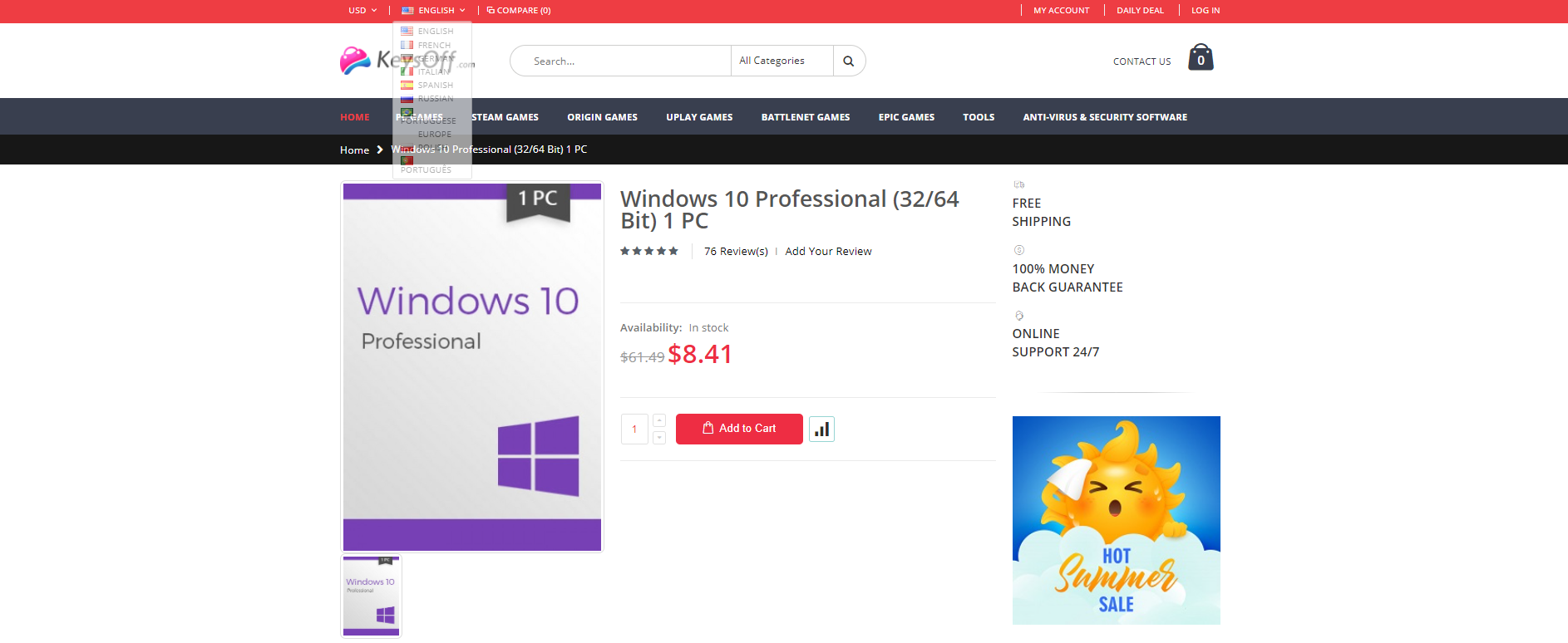 В первую очередь KeysOff предлагает ознакомиться с наиболее популярными предложениями. Это версии Windows 10 и Microsoft Office, в которые уже включены все скидки, а цены стартуют с 8,41 доллара. Стоит учитывать, что есть несколько вариантов активации продукта: по телефону и в режиме онлайн. В первом случае можно сэкономить несколько долларов, на у во втором – сделать всё быстрее. Также стоит принять во внимание, что к данным продуктам не прилагаются купоны и любые другие акции, поскольку в цену уже учтён максимальный дисконт в 90%.