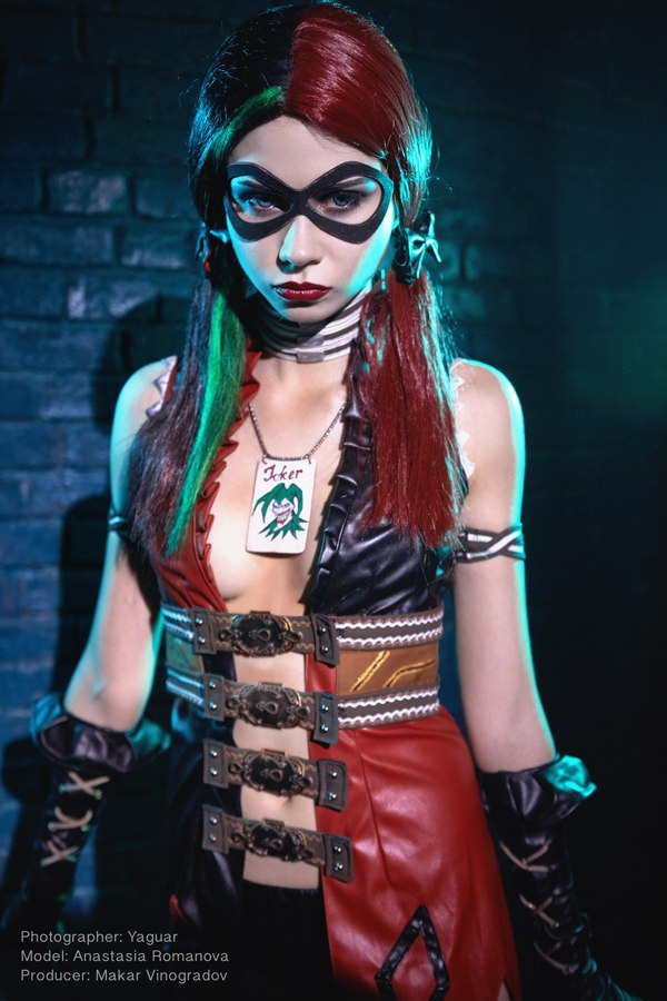 Доброго времени суток! Представляю вашему вниманию сет косплея от очаровательной русской девушки Анастасии Романовой (devilanko). На этот раз красавица взялась за образ главной подружки Джокера из вселенной DC - суперзлодейки Харли Квинн (Harley Quinn)