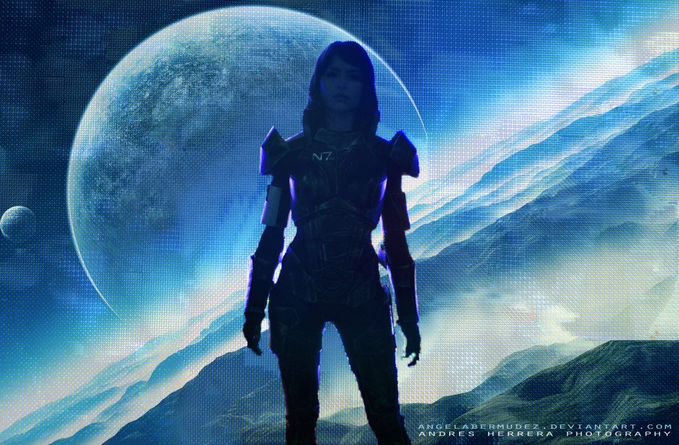 Шепард родилась 11 апреля 2154 года. Капитан — выпускница специальной программы Альянса подготовки элитных бойцов N7 (номер контракта 5923-AC-2826). В 2183 году Шепард служит на экспериментальном фрегате-разведчике «Нормандия SR-1», исполняя обязанности старшего помощника. Позднее Шепард становится первым человеком, вошедшим в Специальный Корпус Тактической Разведки (СПЕКТР).