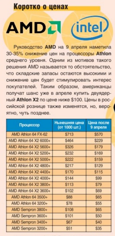 AMD пока нечем ответить, кроме снижения цены на Athlon 64 X2. До первых, не очень удачных, Phenom на ядрах Agena и Toliman остается еще несколько месяцев.