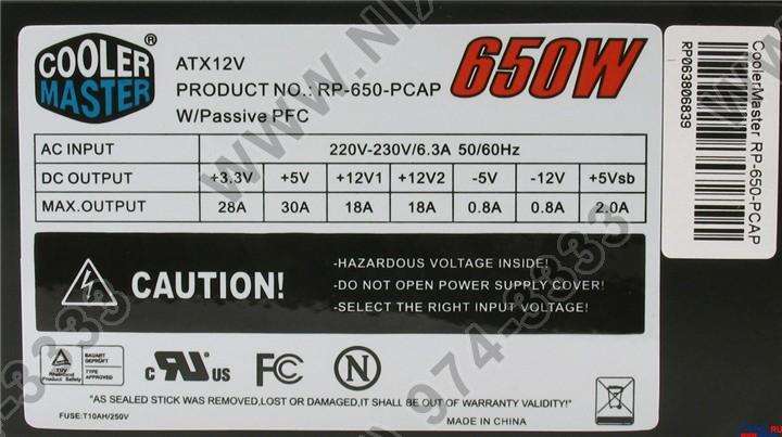 А вот и "старая гвардия", выдающая всего около 430 ватт по линии 12 вольт, но гордо именующаяся "Экстремальная Мощь" - CoolerMaster RP-650-PCAP eXtreme Power. Даже готов к SLI.