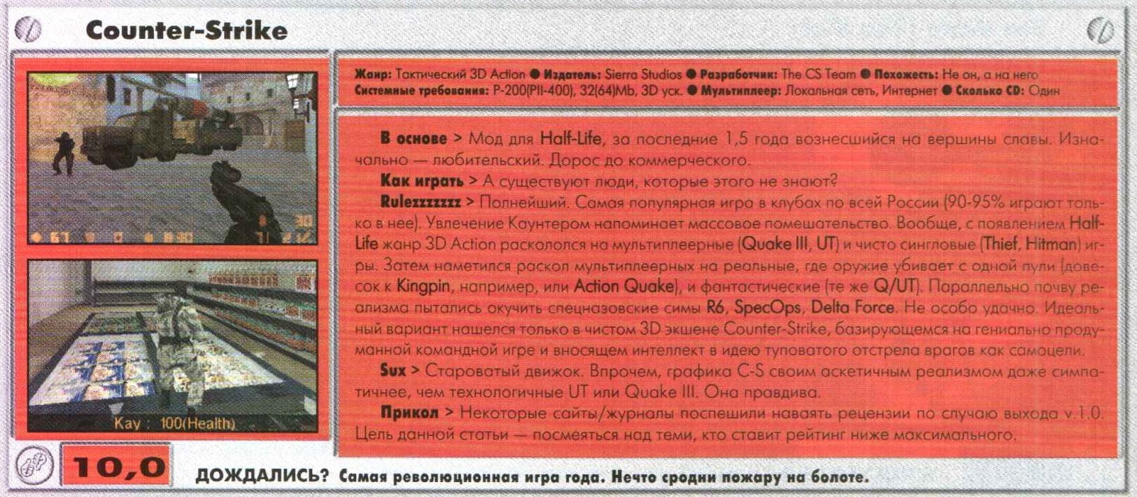Серия мини обзоров "Игромании", Counter-Strike они хорошо охарактеризовали.