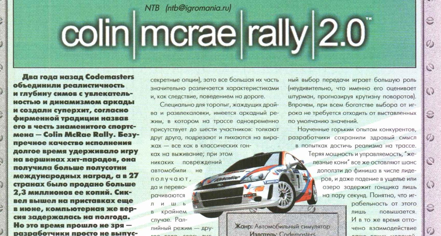 Colin McRae Rally 2.0. Добротное ралли, достойный продолжатель 1-й части.