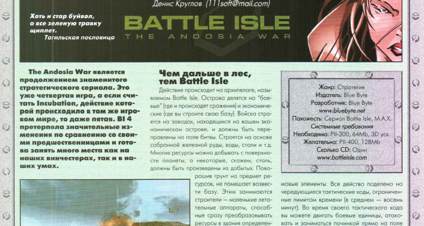 Battle Isle: The Andosia War. Совершенно новый вид военного симулятора, сочетающий в себе стратегии реального времени и пошагового коктейля. В свое время пропустил ее, но интересно будет взглянуть.