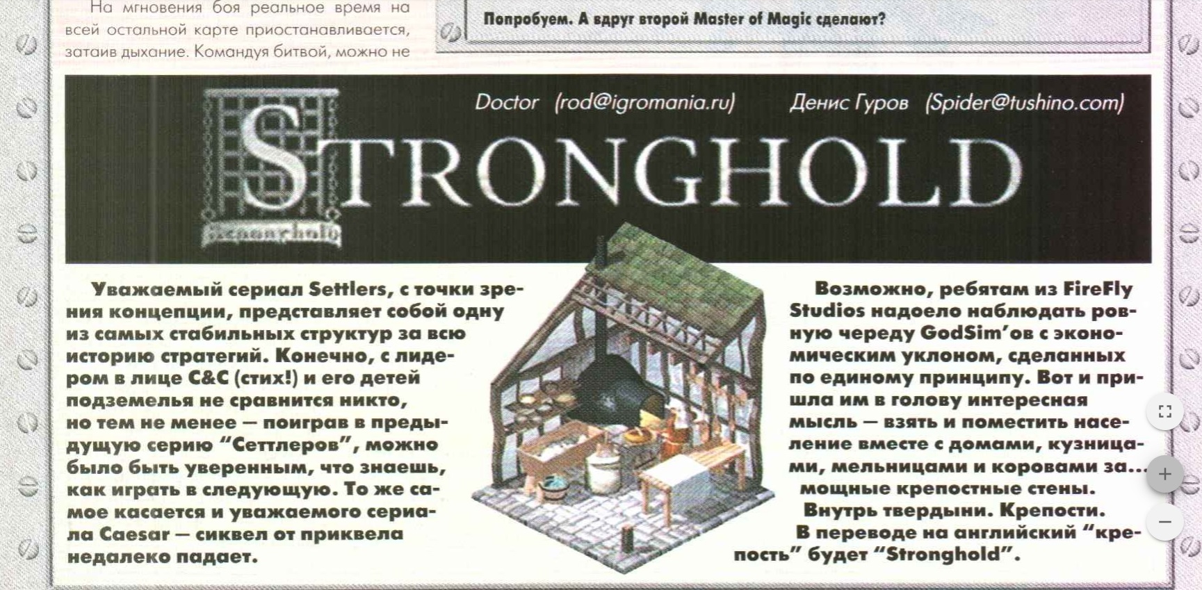 Предварительный обзор Stronghold. Авторы предвкушают хит и не зря. Одна из интереснейших градостроительных стратегий. Я последние годы стал любителем именно этого жанра и Stronghold мне особенно дорог. Однозначный хит, достойный соперник серий ANNO, Settlers и Caesar.