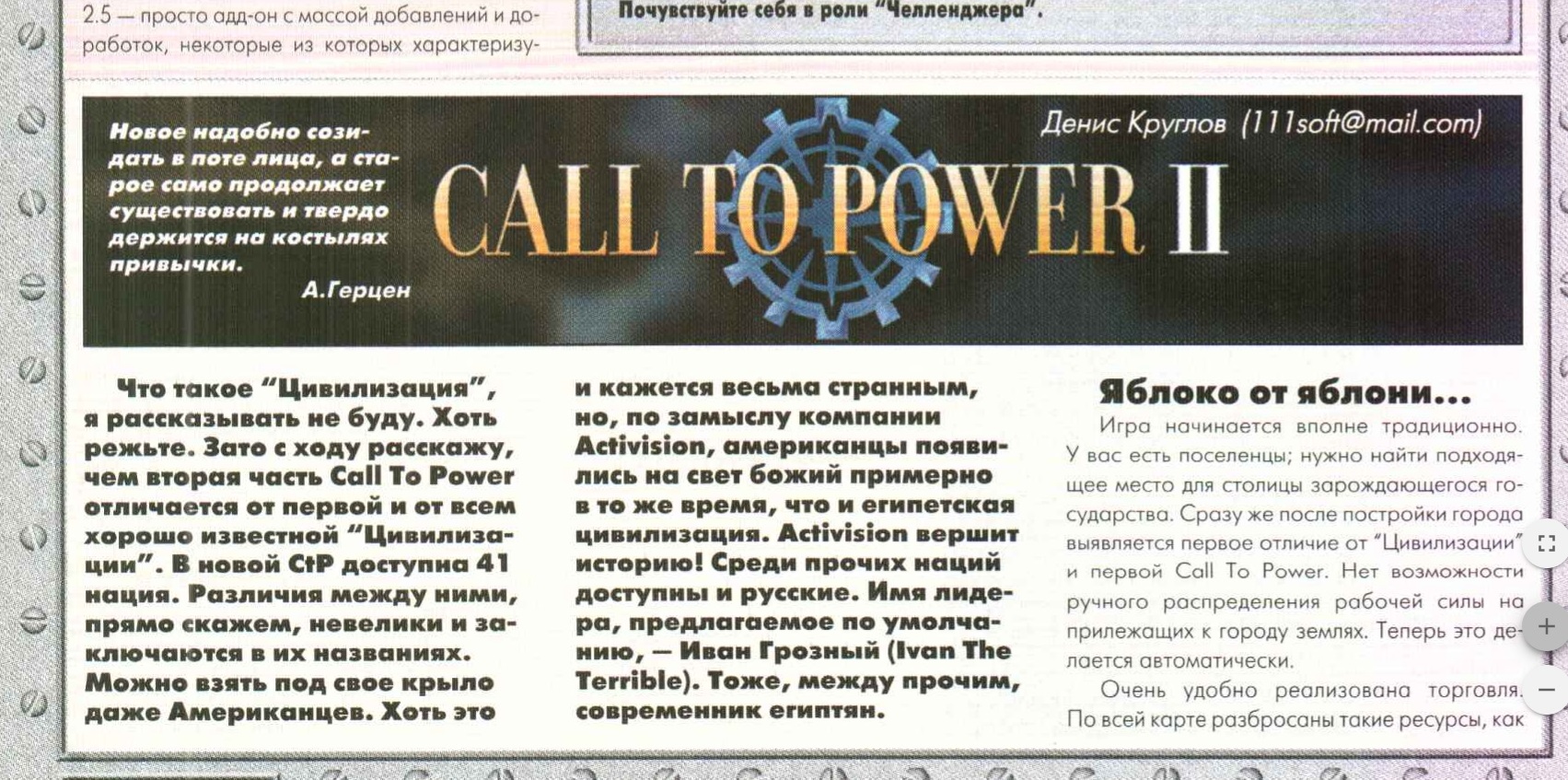 А вот пошаговую стратегию Call to Power II пропустил, даже не слышал про нее, решил попробовать прямо сегодня.