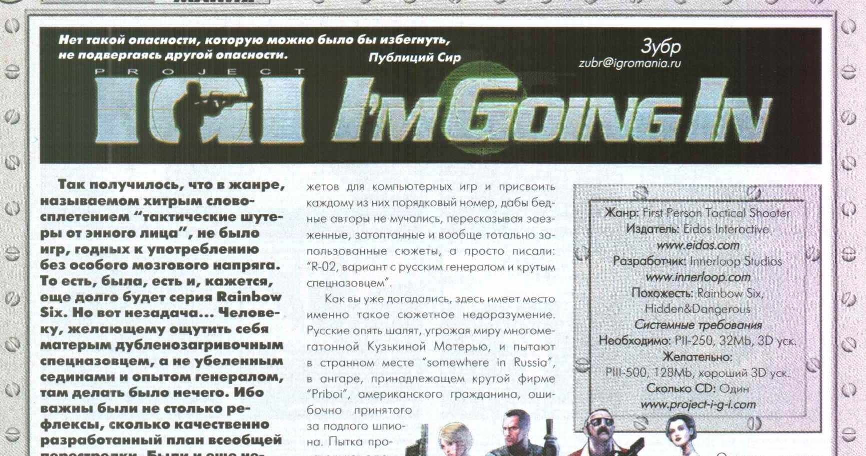 Project IGI: I'm Going In. игра в жанре тактического шутера с видом от первого лица, сам не играл, но знаю, что есть много поклонников серии.
