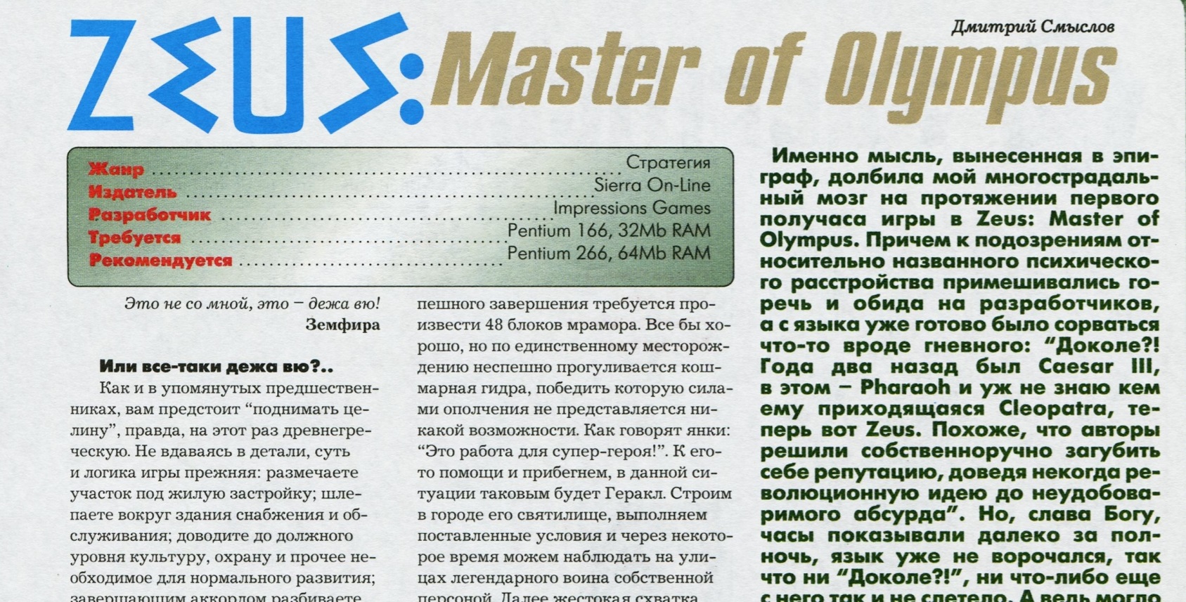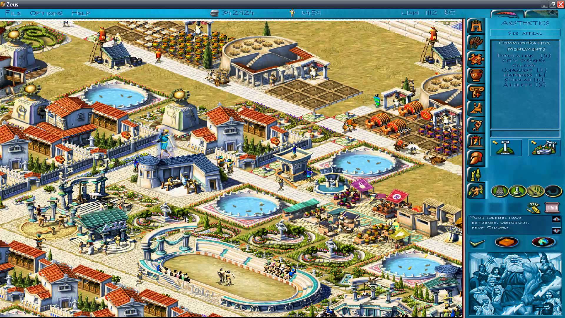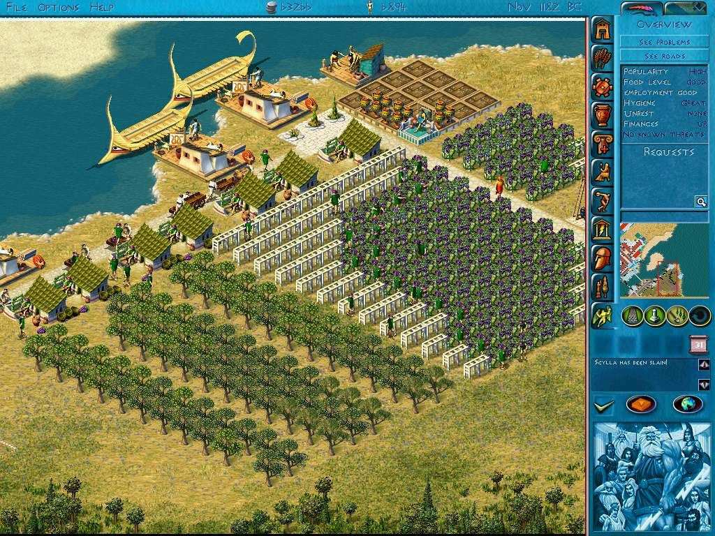 Zeus: Master of Olympus. Еще один прекрасный градостроительный симулятор. Обратите внимание на качество графики, в стратегиях в те годы изометрия правила бал. Для 3D такой уровень еще долго будет недостижим.