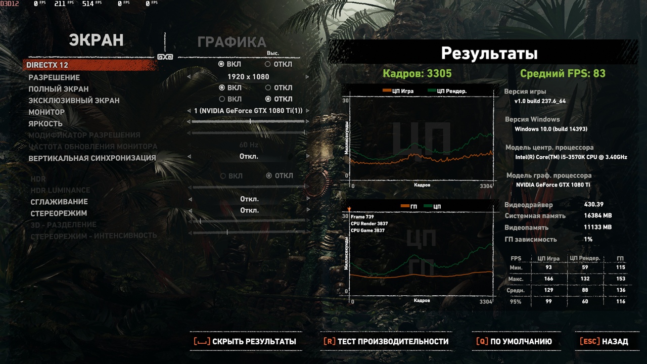 The Shadow Of Tomb Raider. Игра не увидела DSR. Тест только FHD. Первая тестовая сцена. RivaStatistic по 0,1% и 1% показала нули. Статтеров, фризов и проч. в ходе проигрывания сцены не наблюдалось.
