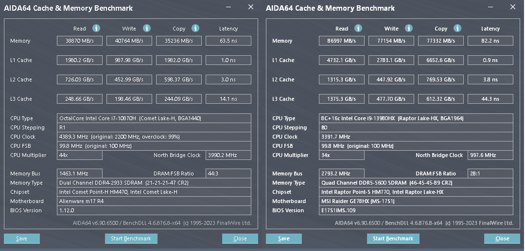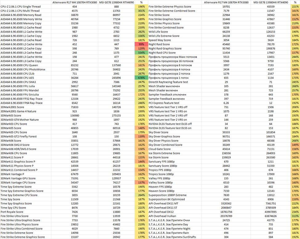 Теперь настала очередь тестов. Я провел большое количество тестов, так что любой из читателей сможет сравнить в нужном ему тесте свой ПК с этим ноутбуком, и оценить, насколько лучше, или хуже его ПК, в сравнении с данным ноутбуком. Сравнение будет между Alienware R17 M4 10870H RTX3080 и MSI GE78 13980HX RTX4090. Между ноутбуками разница в 2 года. Это топ 2021 года и топ 2023. 3080 против 4090.