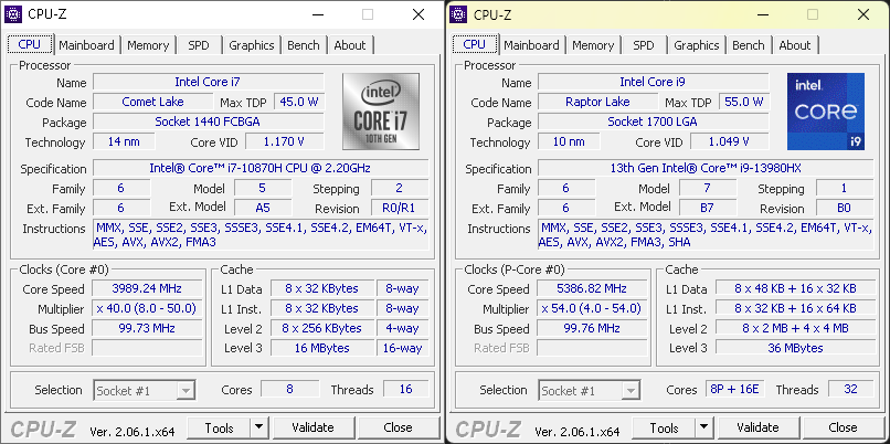По тестам программы CPU-Z видно, что в однопотоке 13980 почти вдвое быстрее, хотя частота одного ядра не в 2 раза выше. Очевидно, что это результат оптимизации ядра процессора. В многопотоке новый процессор втрое быстрее, хотя потоков больше лишь в 2 раза – 32 против 16 у 10870.