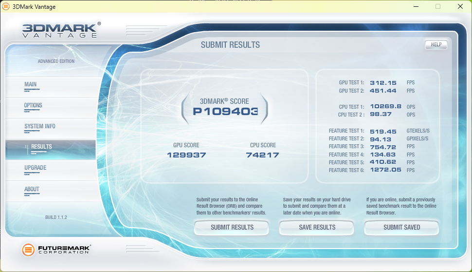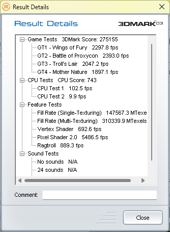Старенький тест 3DMark2001 показывает двукратный прирост. 3DMark03 дает прирост 90%. 3DMark05 уже тяжело дался новой видеокарте, она показала прирост всего 50%, а процессор 79%. В 3DMark06 средний прирост составил 62%. В 3DMark11 средний результат 58%. Ламповый 3DMark Vantage дает нам 77% прироста по видеокарте, а вот процессор был оценен всего на 37% лучше.