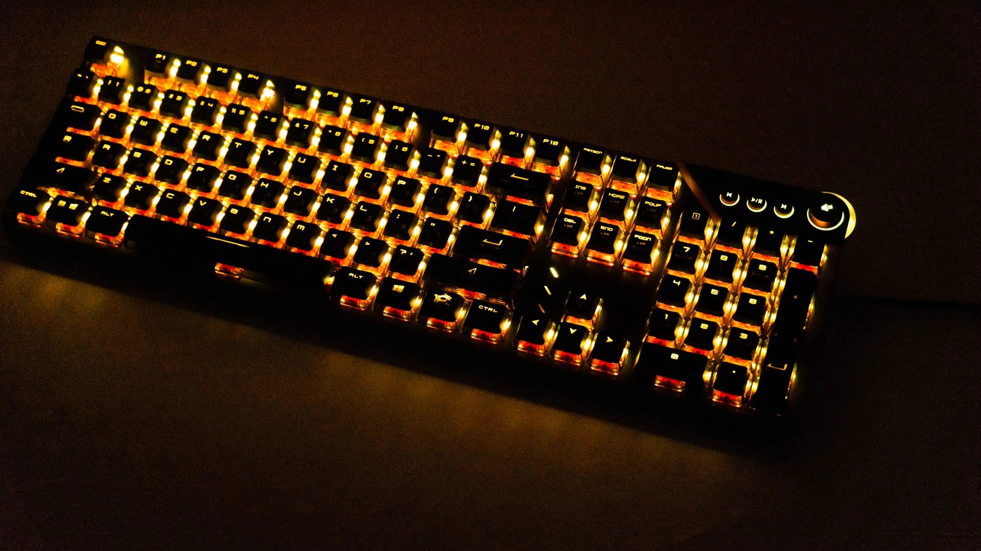 С эстетической точки зрения Vigor GK71 Sonic выглядит привлекательно, красочно и ориентирован на игры. Кроме того, он отличается превосходным качеством сборки благодаря верхней алюминиевой раме. Выделенные мультимедийные клавиши - приятная дополнительная функция, обеспечивающая быстрый доступ и управление. Однако регулятор громкости с кнопкой выключения шатается и немного поскрипывает при повороте. Он не такой плавный, как у других механических клавиатур с регуляторами громкости.