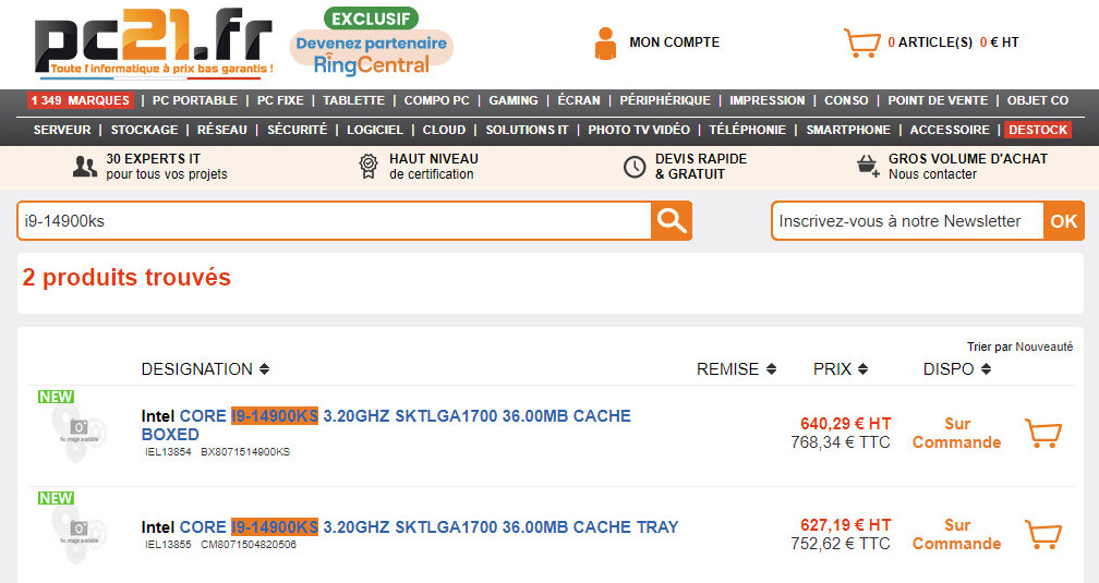 Core i9-14900KS - далеко не самый выгодный для кошелька вариант, однако, судя по несвоевременным объявлениям, OEM-вариант позволяет сэкономить в общей сложности 16 евро (~17,25 доллара США), если сравнивать его со своим модным собратом в коробке. Французский ритейлер утверждает, что оба продукта находятся под заказом, а на складах компании их нет.