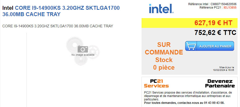 По всей вероятности, мы увидим еще больше утечек информации о предварительном выпуске Intel Core i9-14900KS по мере приближения к середине марта, когда, по слухам, его выпустят. Их последнее открытие указывает на коды продуктов "BX8071514900KS" и "CM8071504820506", а также на два объявления в веб-магазине PC21 France. Судя по всему, Intel собирается предложить свою предстоящую ограниченную серию убер-флагмана Raptor Lake Refresh в двух разных вариантах: первый - это традиционная коробочная упаковка, а второй - вариант с лотком (для системных интеграторов).
