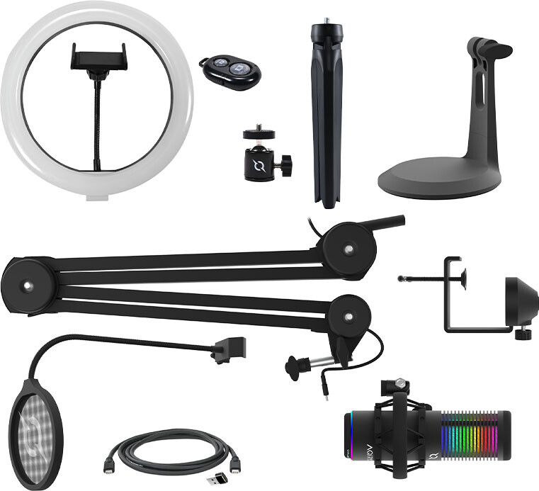 GALILEO также отличается простотой использования через подключение по USB-порту, что делает его доступным как для профессионалов, так и для любителей. К каждому микрофону GALILEO прилагается бонус - Ring Light диаметром 260 мм с держателем для телефона, пультом дистанционного управления и настольным штативом.