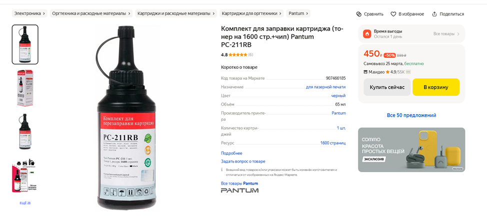 До покупки я также приценился к расходникам. Для данных принтеров продается тонер в банках, картридж рекомендуется заправлять не более трех раз, ибо больше не выдержат чип и фотобарабан, размещенный в самом картридже. Но можно и не заморачиваться с заправкой, а купить новый картридж. Совместимые картриджи стоят от 600 рублей.