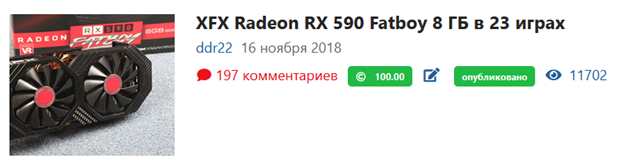 Теперь посмотрим какие мои материалы вызывали у читателей жгучее желание оставлять десятки комментариев. На первом месте статья про видеокарту XFX RX 590 Fatboy. 6 лет назад эта заметка вызывала жаркие споры и дискуссии, в результате чего читатели оставили 197 комментариев.