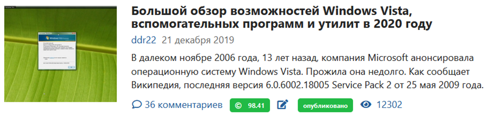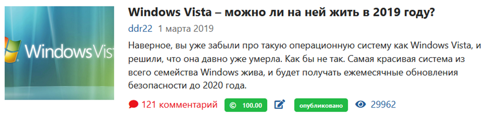 А на третьем месте по числу комментов стоит статья пятилетней давности – можно ли жить на Windows Vista в 2019 году.