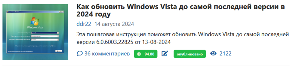 Не скрою, Vista моя самая любимая в визуальном плане система, и ей я посвятил много заметок. Совсем недавно вышла статья «Как обновить Windows Vista до самой последней версии в 2024 году», из которой можно узнать, как можно поддерживать эту систему в актуальном обновленном состоянии в наши дни.