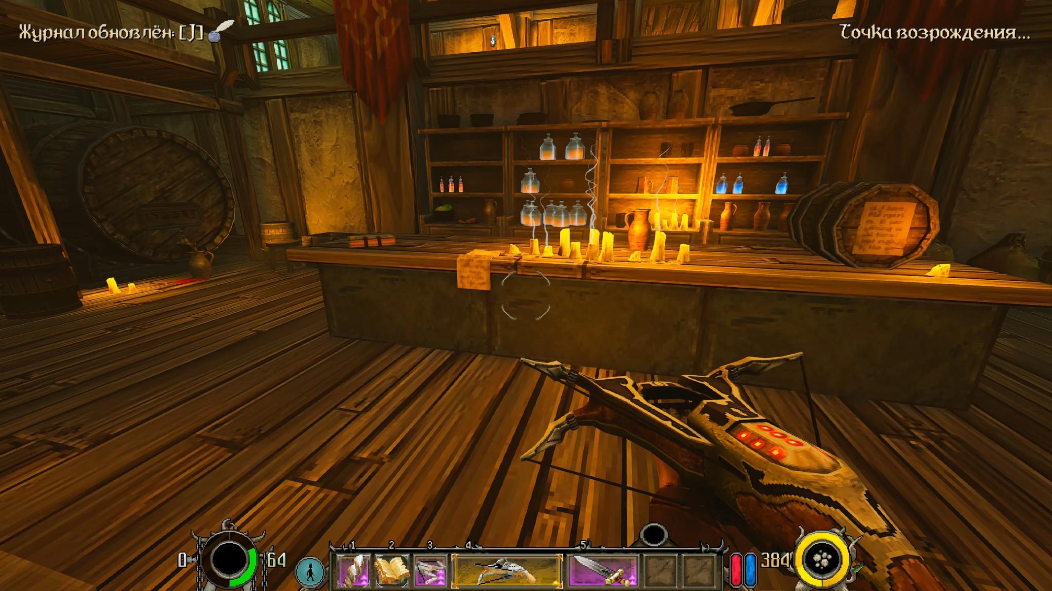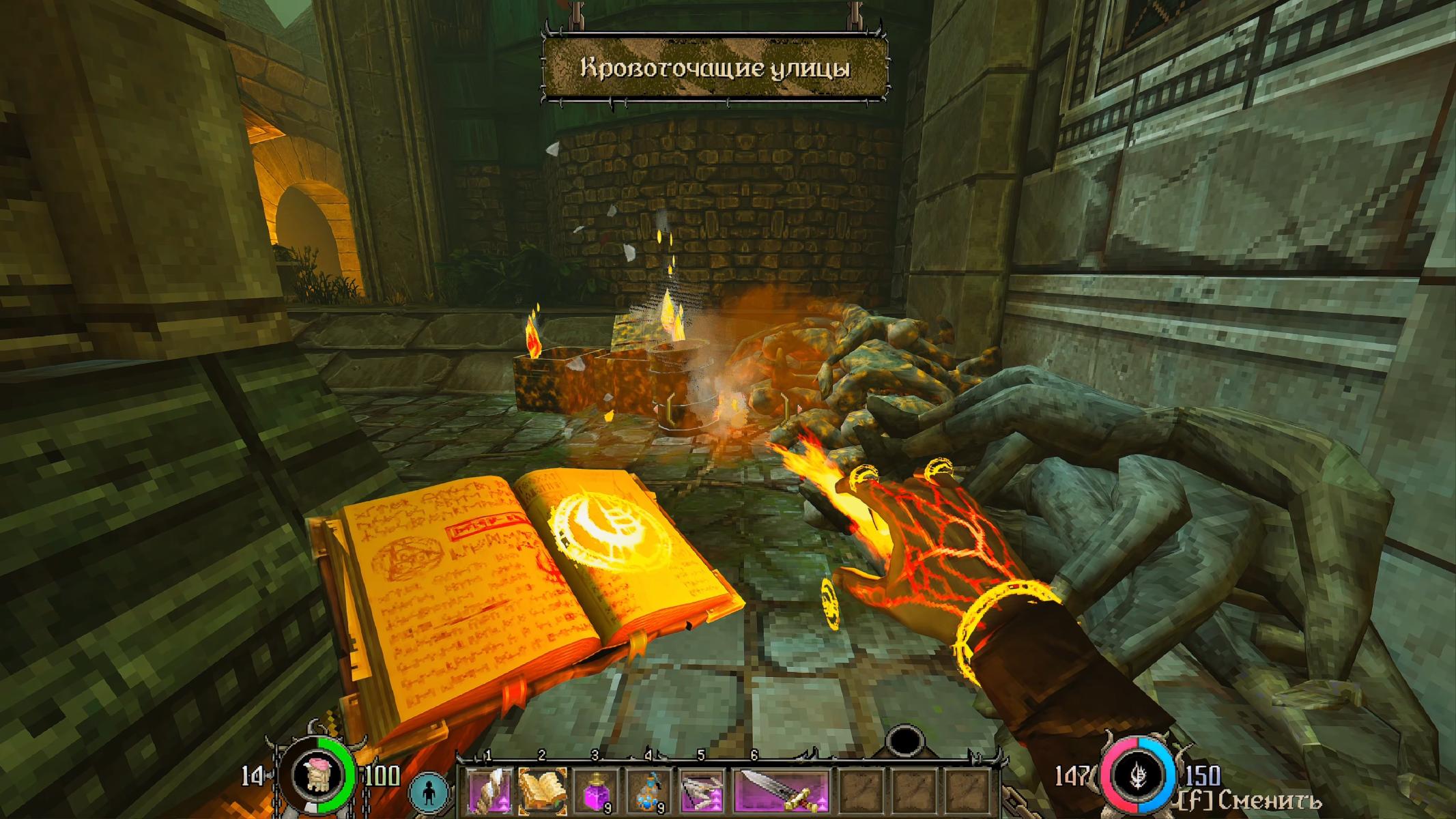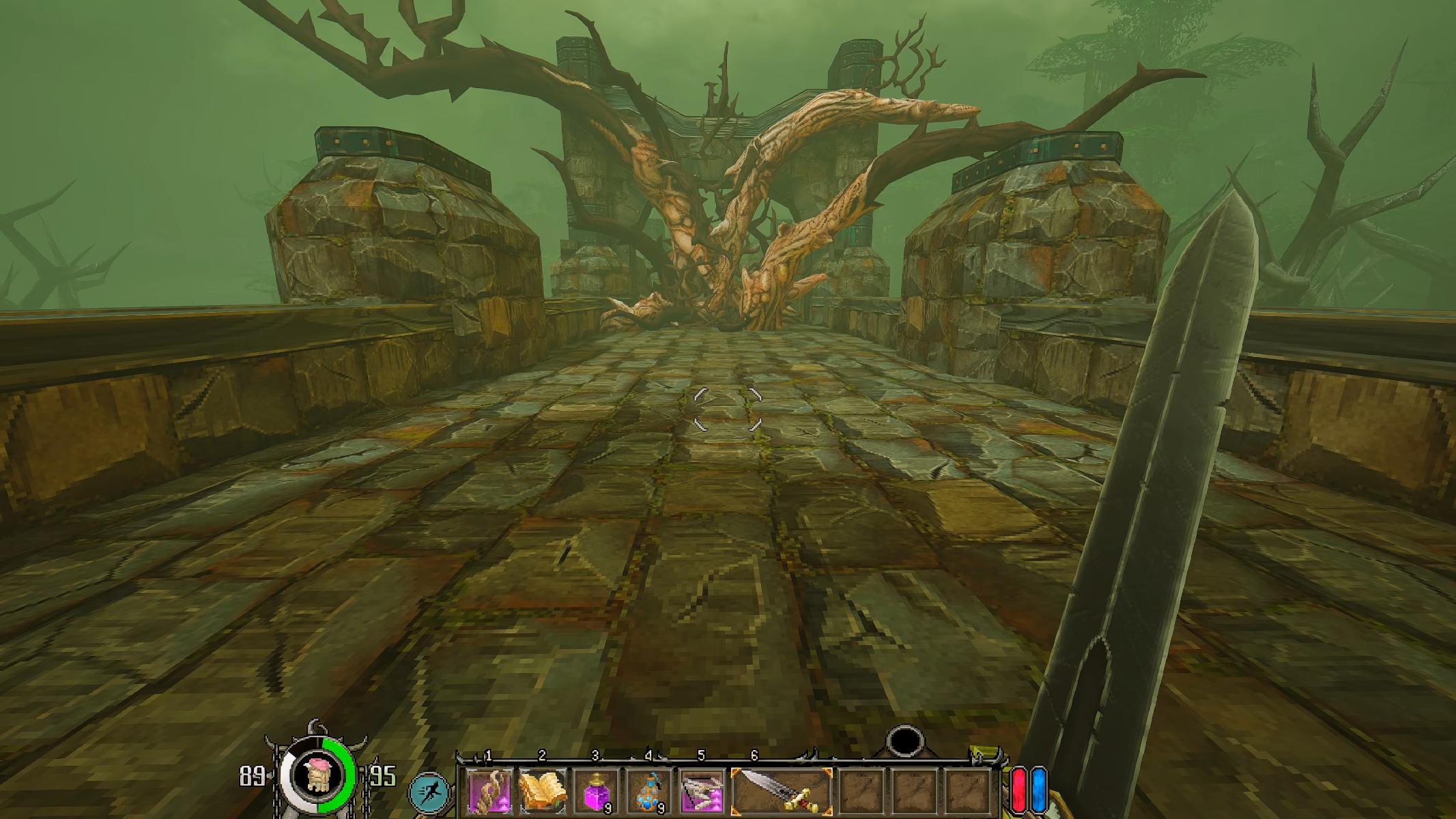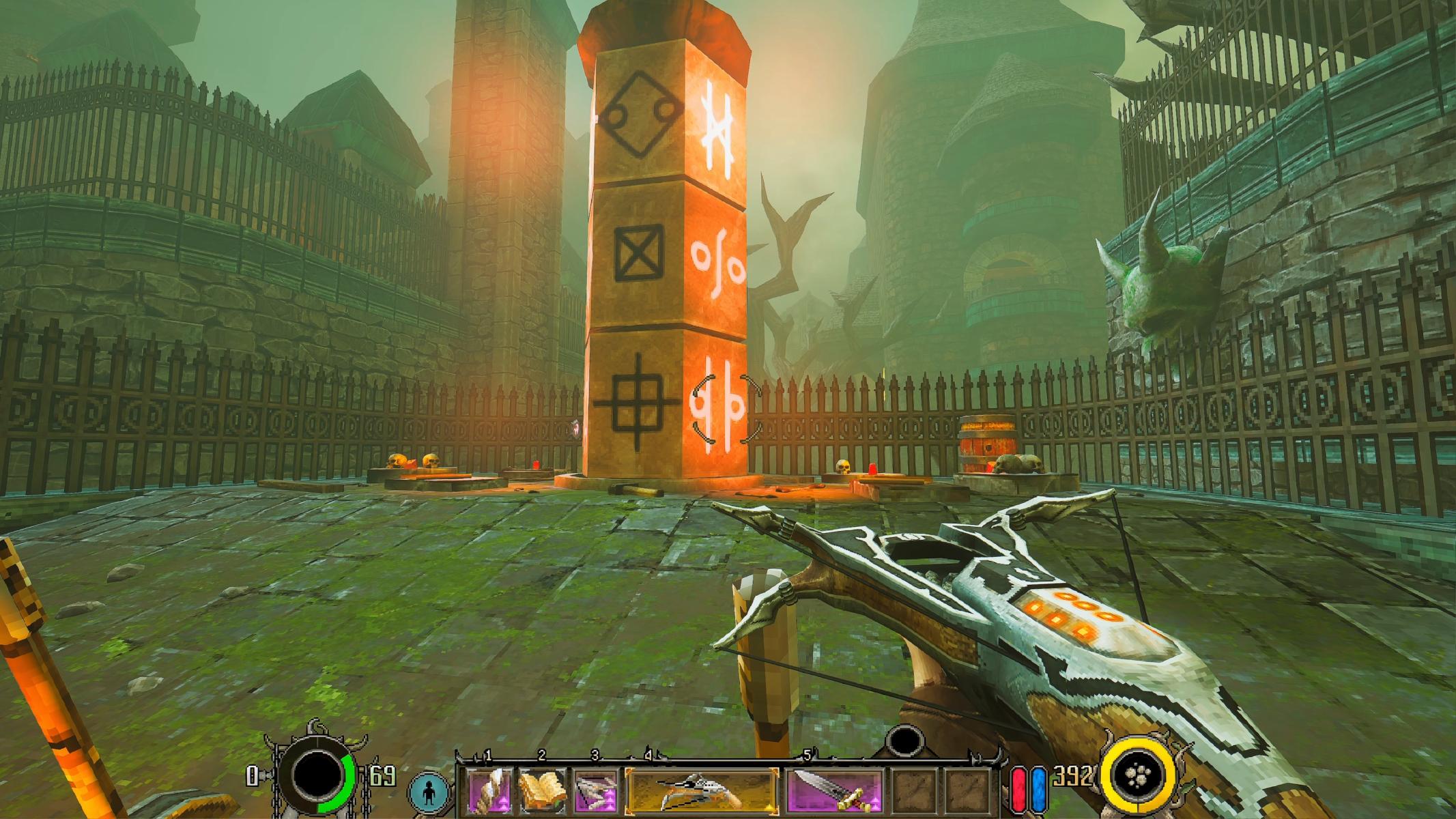 Сложность заключается в том, что совершенно непонятно куда идти и что делать. В игре нет никакой карты, а у местных NPC нельзя ничего спросить. Поэтому придется запоминать все маршруты в уме. Каждое задание в дневнике умещается в одно предложение такого рода: на локации с таким-то названием надо найти предмет или убить монстра. При этом совершенно непонятно, как попасть в эту локацию, а после того, как попал, непонятно где искать на этой локации цель задания. Разработчики игры - 3D Realms, которые создали серию игр про Дюка Нюкема, - помешались на бэктрекинге, поэтому вы будете возвращаться в уже пройденные места снова и снова, из новых подходов и новых дверей. Игра представляет собой переосмысление старых игр Hexen и Heretic в стиле Dark Souls. Если вы пропустили какой-то неосновной квест – не страшно, после прохождения игры, в каждом из трех городов появится телепортационный посох, который позволит путешествовать свободно по всему миру игры, и вы сможете посетить пропущенные места или собрать пропущенные предметы.