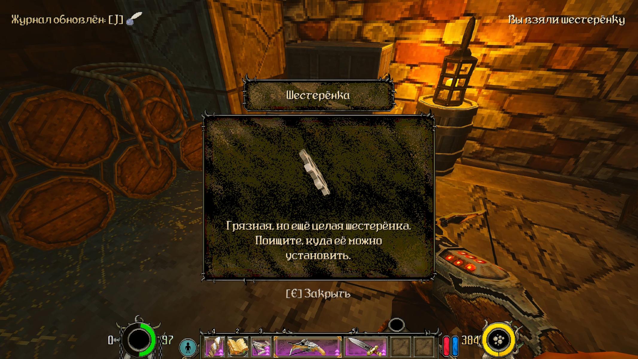 Запомните ее. Это первая из двух квестовых бочек для бармена. Не берите ее пока не получите квест от бармена Мориса в Краксфирте. Выйдя из гостиницы и открыв решетку рычагом, вы попадете в Краксфирт, разблокировав путь прямо за статуей. Задание «Кровоточащие улицы» выполнится, и откроется задание "Архивы Краксфирта". Побродив вокруг библиотеки, вы подберете механический рычаг. Затем вы спуститесь в подвал библиотеки. В подвале нужно починить лифт. Для этого находим три шестеренки.