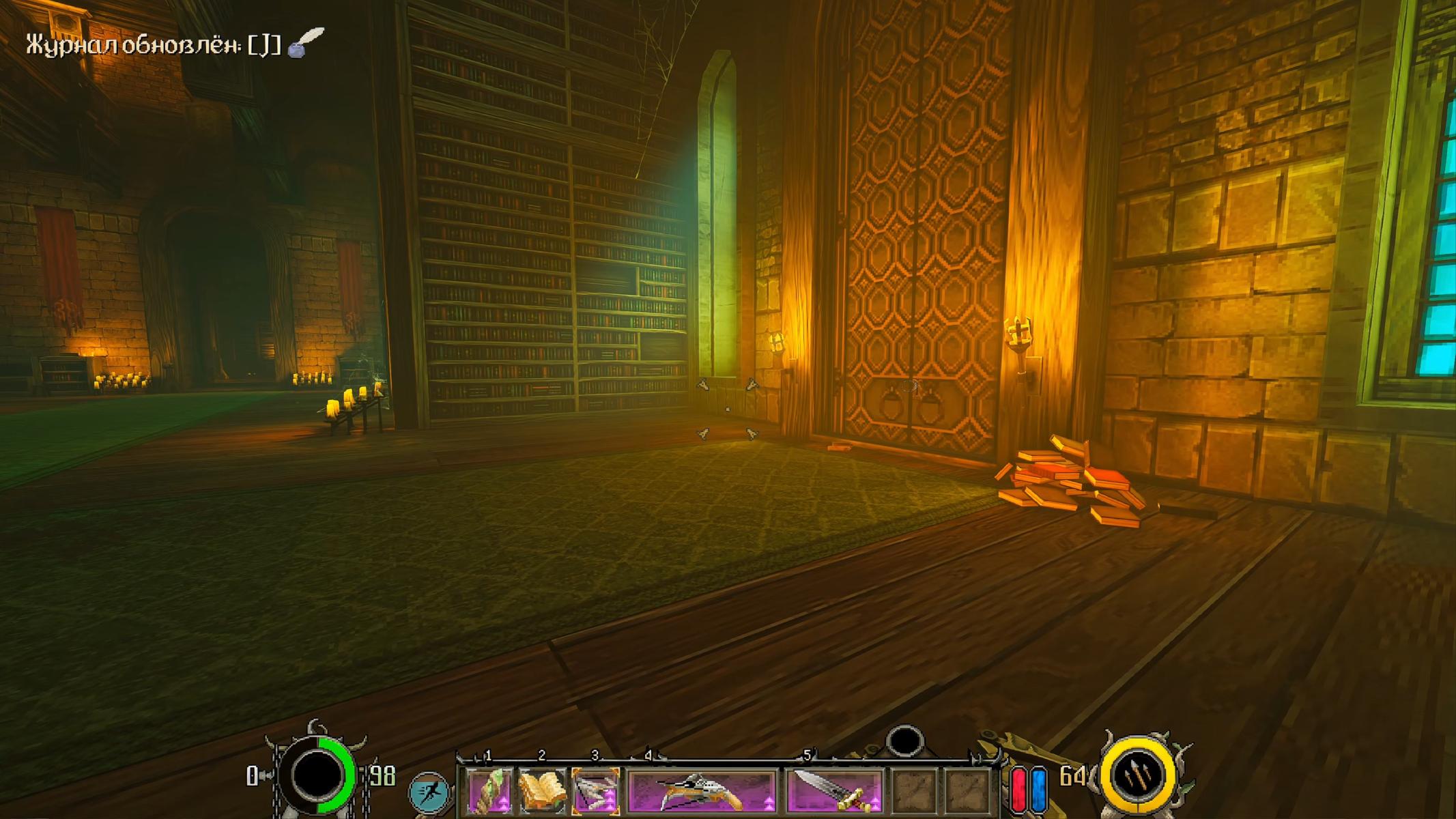 В комнате за дверьми мы получим новое оружие Псалтырь Чистейших. Миссия "Архивы Краксфирта" завершится. Далее можно было бы спуститься в подвал библиотеки, чтобы выполнить квест «Книги под землей», но я оставил это на потом. Идем в дальний угол библиотечной локации к воротам с трещинами. Теперь мы можем открывать все такие места. Кода у вас в руках будет посох с зеленым кристаллом все места, которые можно им разломать будут светиться зеленым светом.