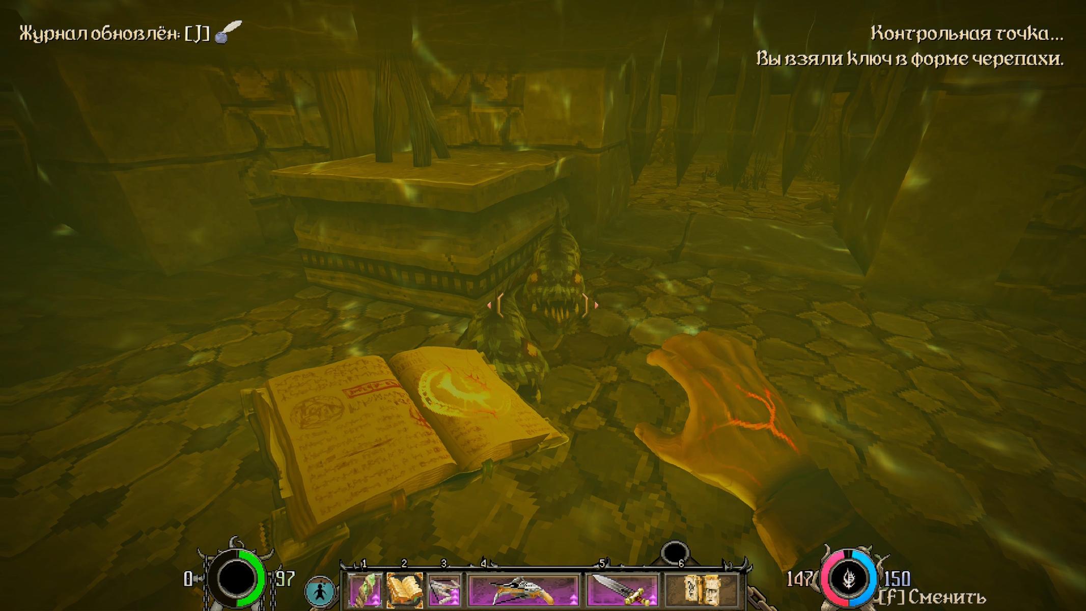 На болоте вы найдете башню, у которой есть затопленный подвал. Там в воде найдете ключ в форме черепахи.