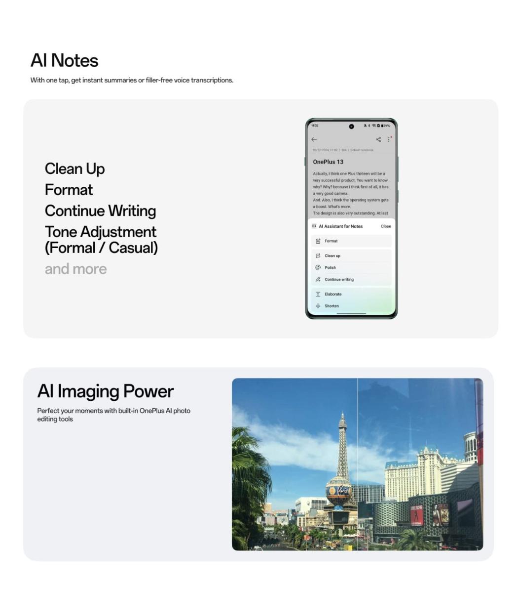 В листинге Amazon также раскрываются некоторые другие характеристики OnePlus 13R. Он будет иметь массивную батарею на 6 000 мАч. Кроме того, в OnePlus 13R появится функция «AI Notes», которая вероятно относится к улучшенным возможностям заметок, использующим искусственный интеллект.