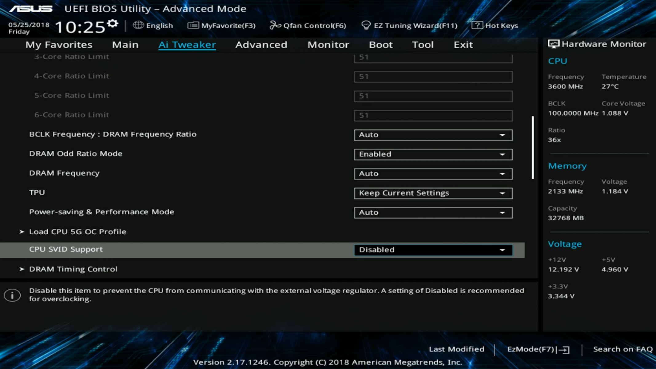 Переходим к разгону процессора. Выставим в БИОС вручную множитель на 51