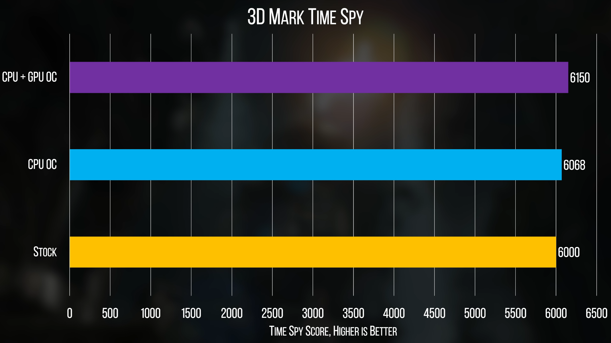 Прирост графической мощи был не столь велик как у процессора, потому что заводская технология разгона Nvidia уже выжала из видеокарты максимум. И для дальнейшего разгона нужно прошивать модифицированный БИОС и аппаратно повышать напряжение видеокарты.