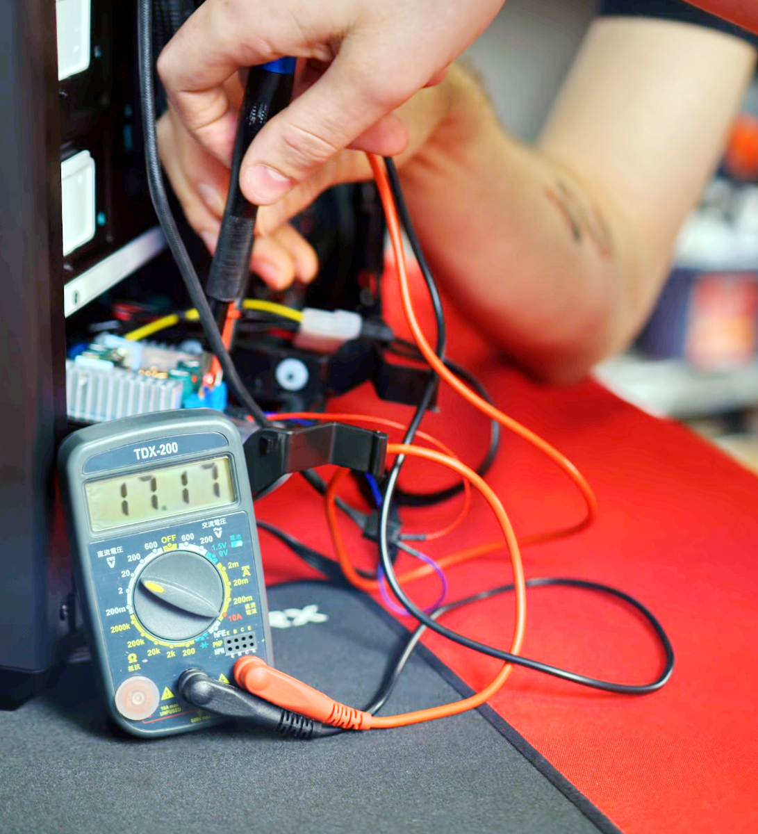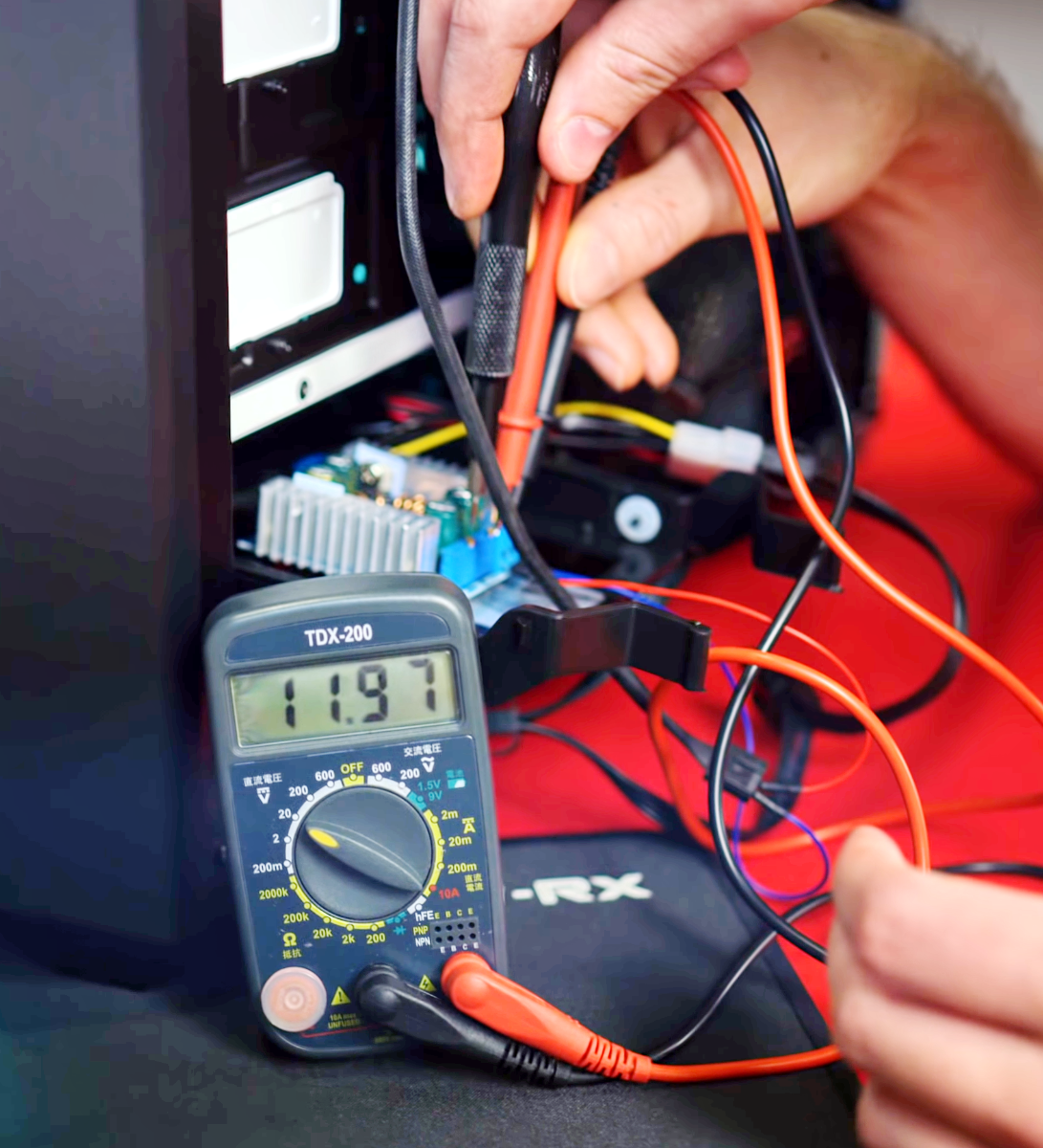 Далее мы приступаем к разгону охлаждения компьютера. Мы взяли преобразователь постоянного напряжения, подключили к нему molex разъем, который выдавал нам по линии 12V – 11.97V