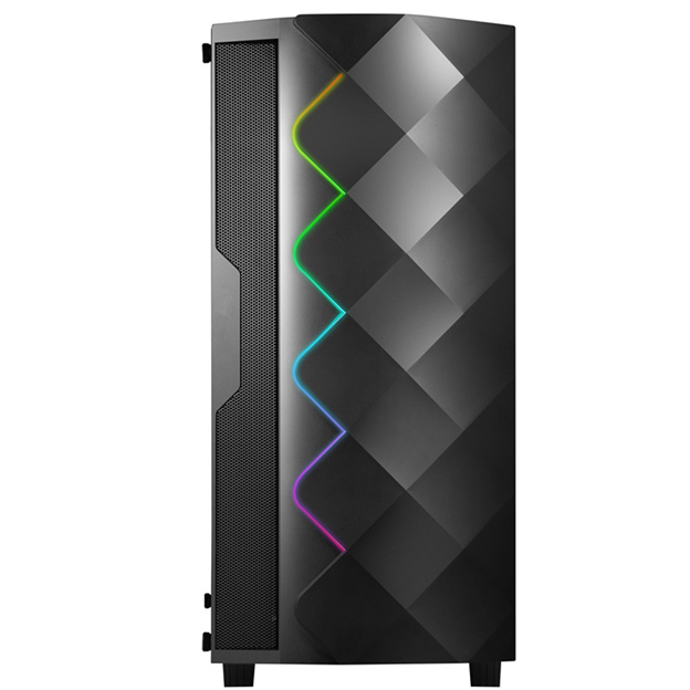 Корпус за 4235 рублей с бесплатной доставкой от производителя S SKYEE радует приятным дизайном, красивой RGB подсветкой. Можно выбрать только чёрный вариант. Стоит отметить наличие на боковой стенке закаленного стекла, а не акрила, как в дешевых корпусах. Вентиляторы в комплекте не идут, при желании их можно докупить потом отдельно. Корпус поддерживает видеокарты до 330 мм, в него как раз влезет наша видеокарта. Точно такой корпус не продается в РЕГАРДе, но похожий по дизайну корпус от GAMDIAS обойдется в 5180 рублей.